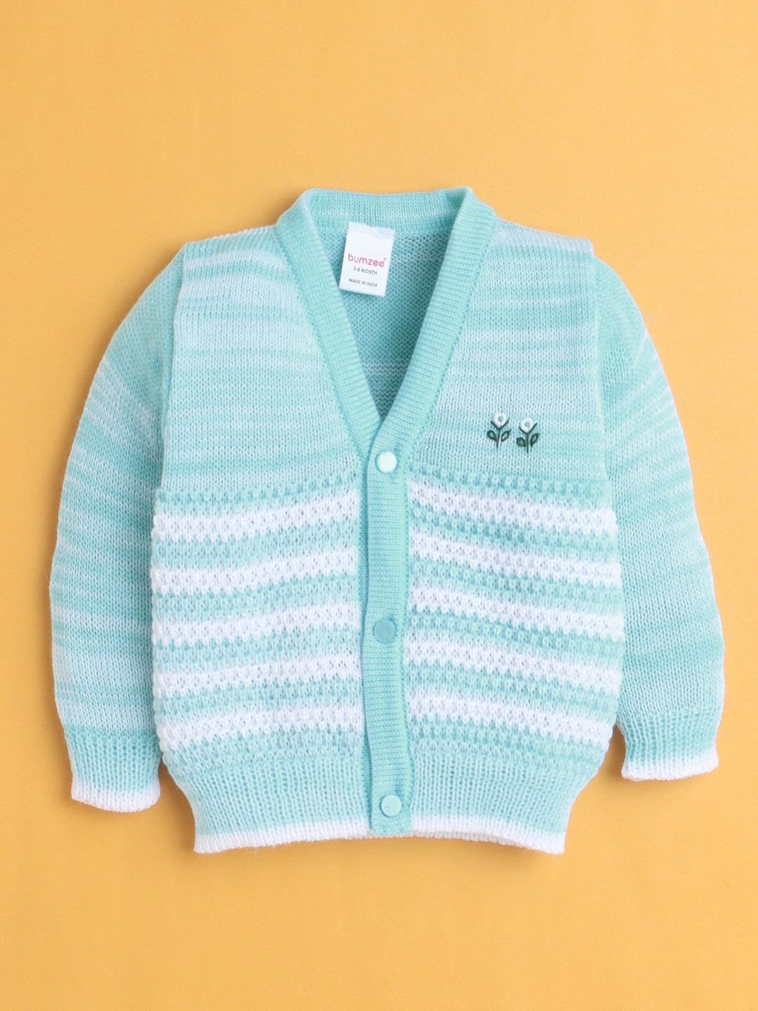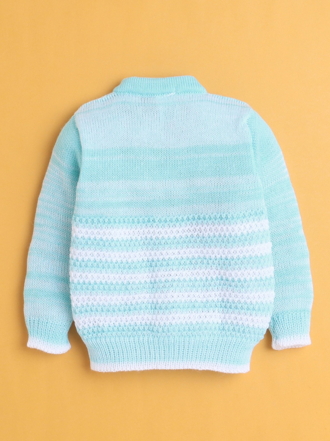BUMZEE Aqua Baby Boys Full Sleeves Acrylic Blend Sweater With Cap & Socks