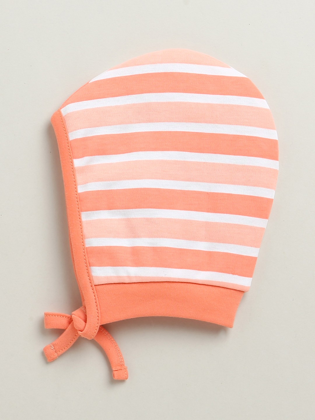BUMZEE Peach & White Baby Girls Round Cap Pack Of 2