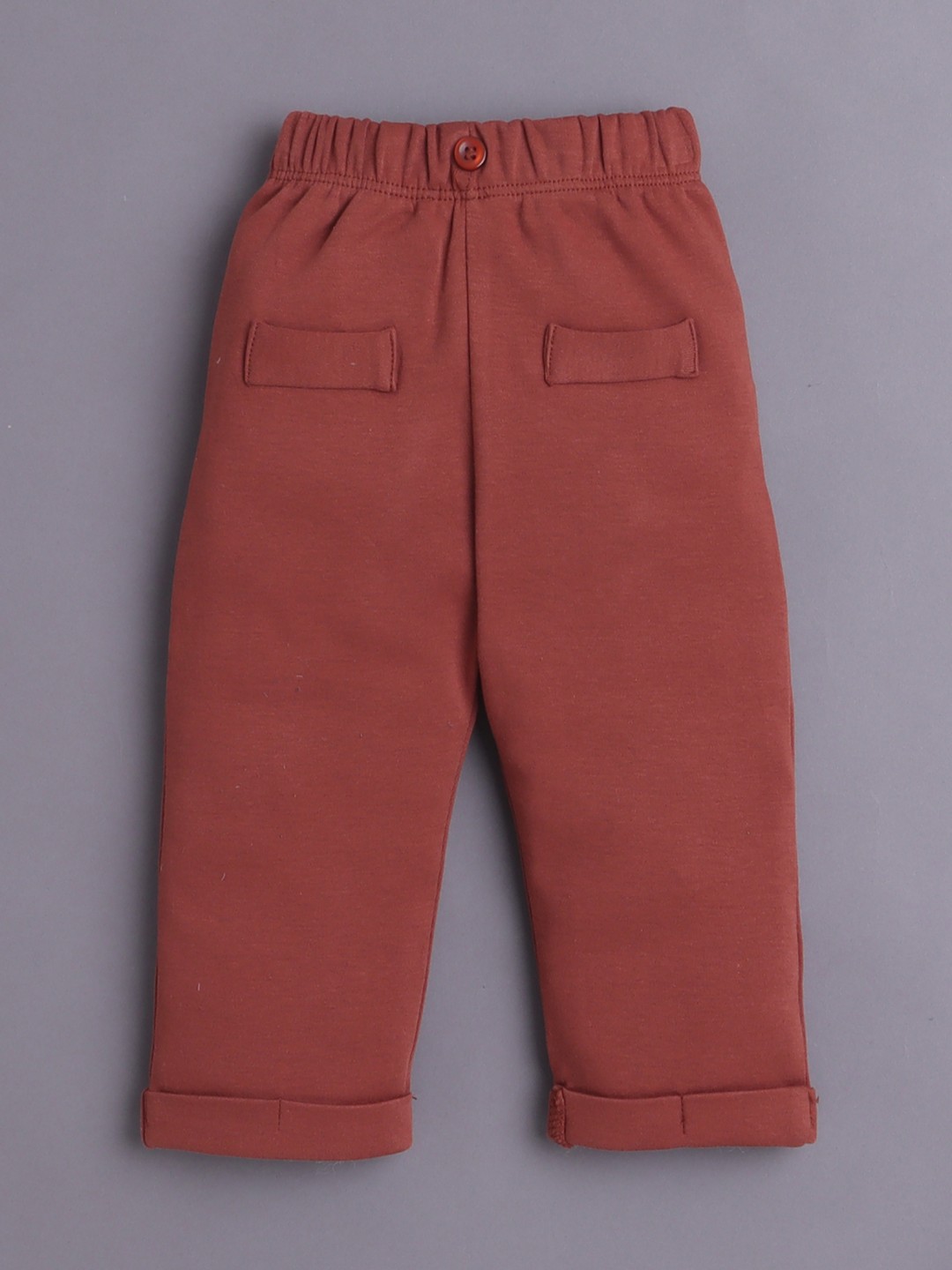 BUMZEE Beige & Maroon Boys Full Sleeves Shirt Waistcoat & Pant Set With Applique Bow