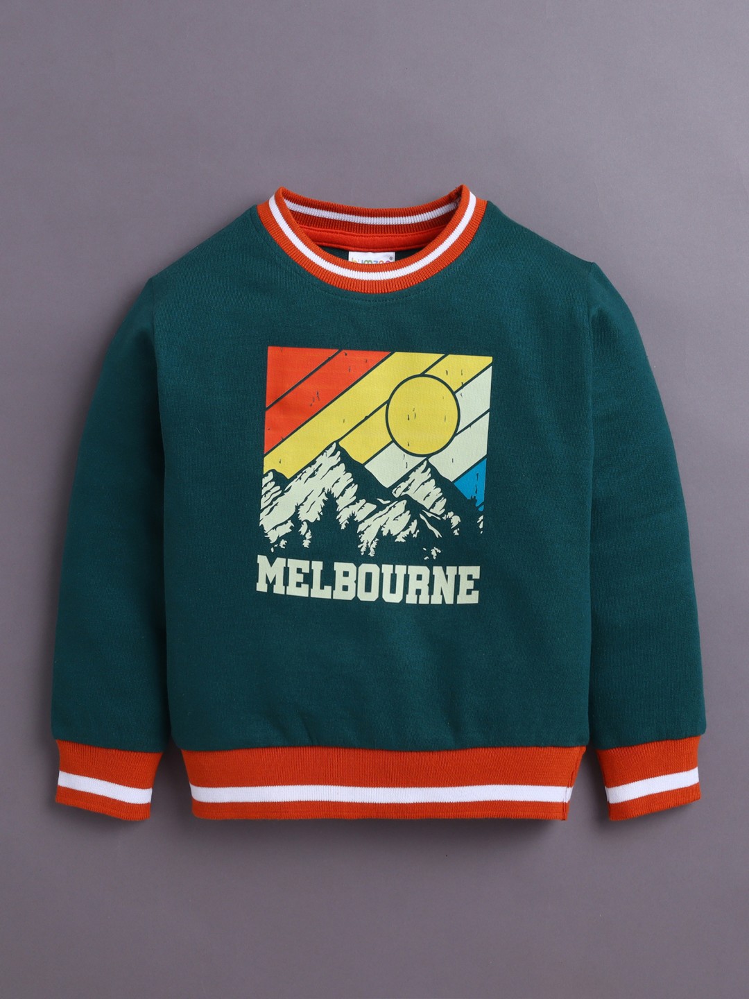 BUMZEE Green Boys Full Sleeves Cotton Sweatshirt