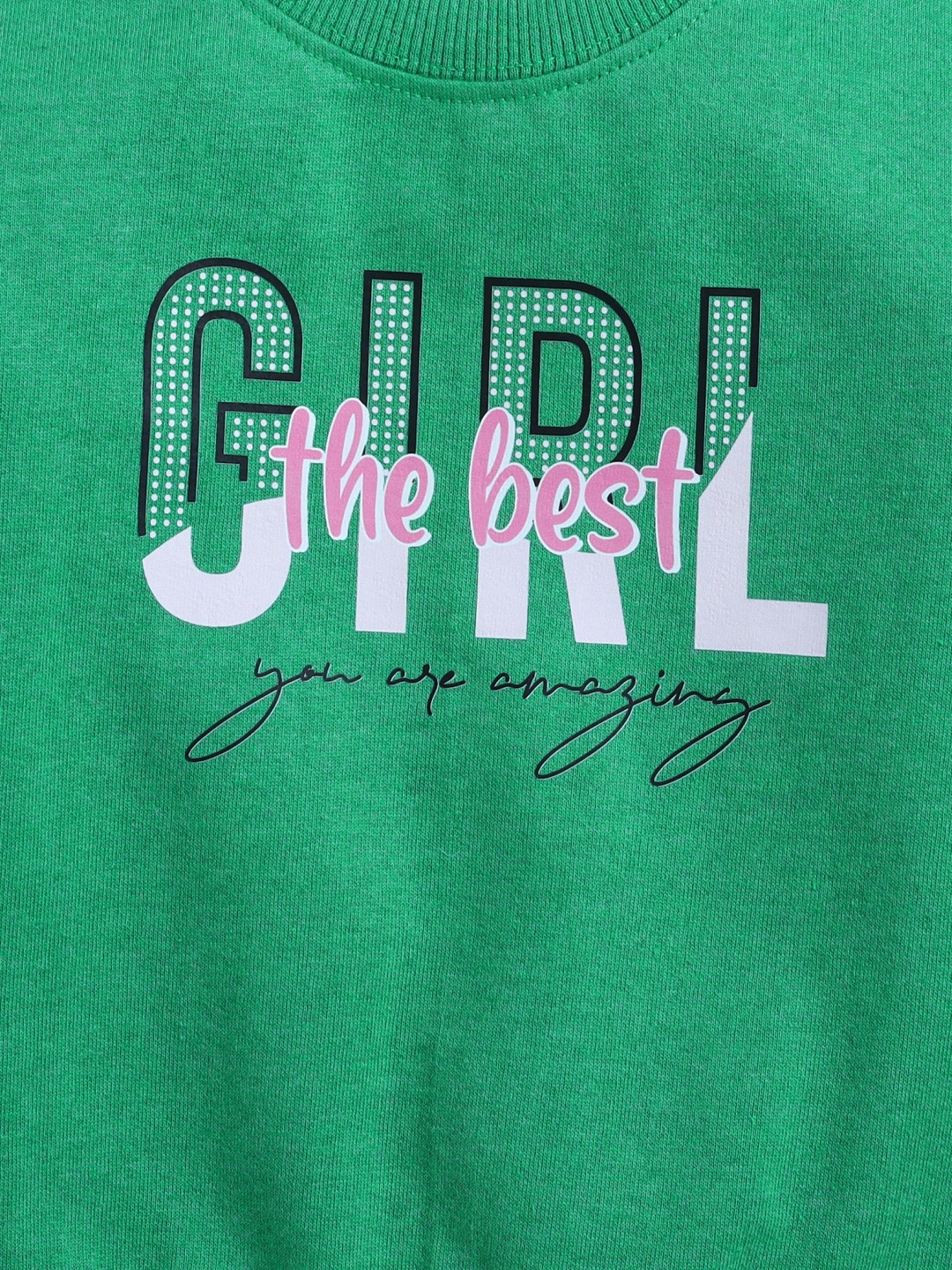 BUMZEE Green Girls Full Sleeves Cotton Hooded Sweatshirt
