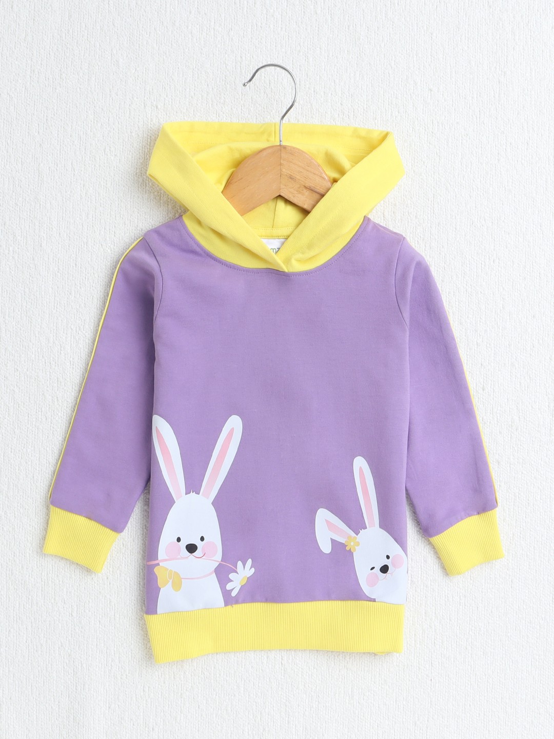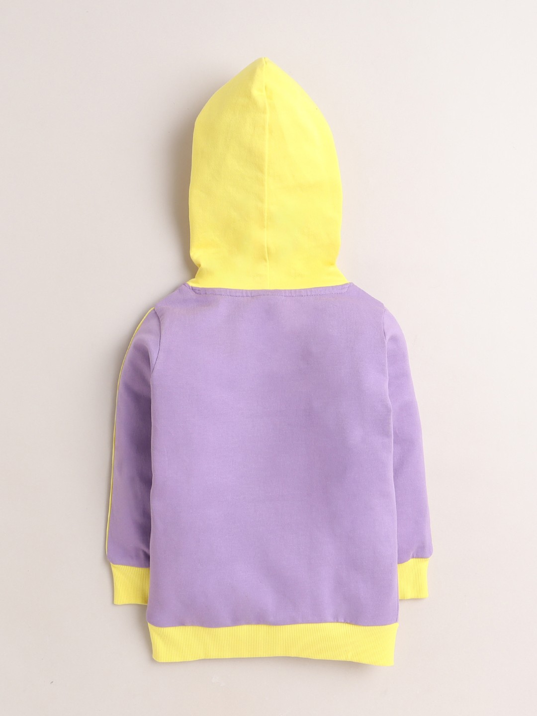 BUMZEE Lavender & Yellow Girls Full Sleeves Cotton Hooded Sweatshirt