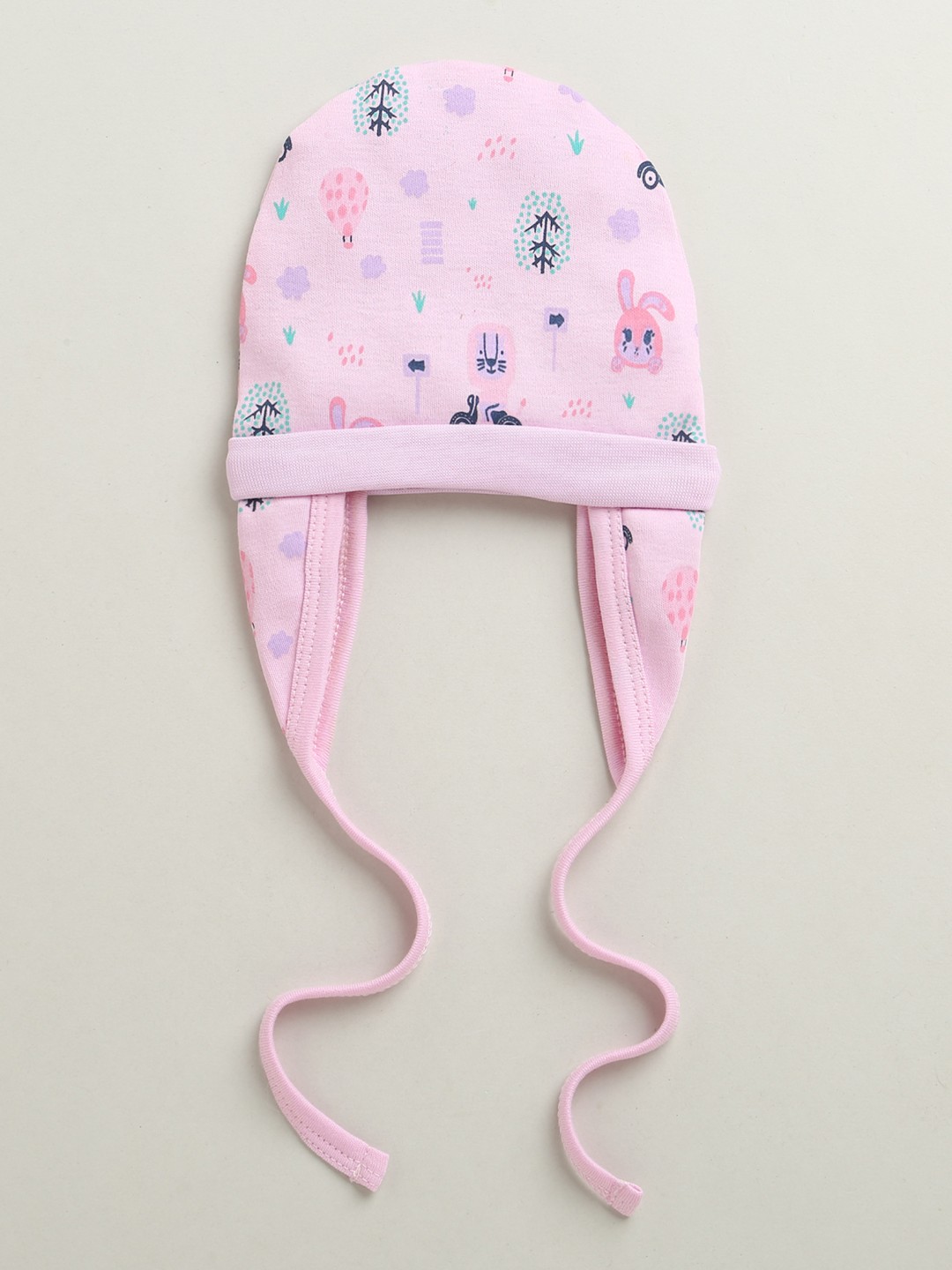 BUMZEE Baby Pink & White Baby Girls Round Cap Pack Of 2