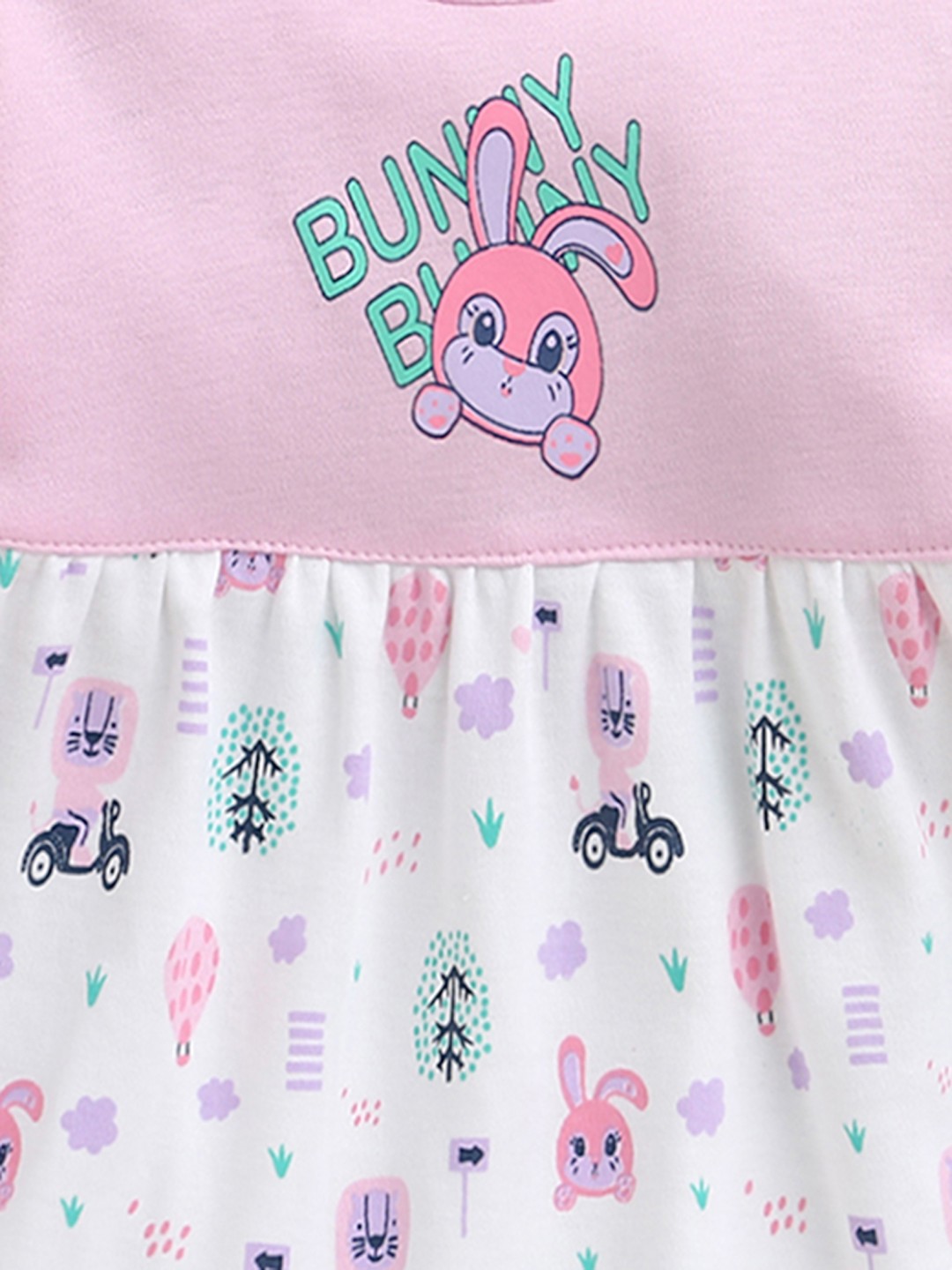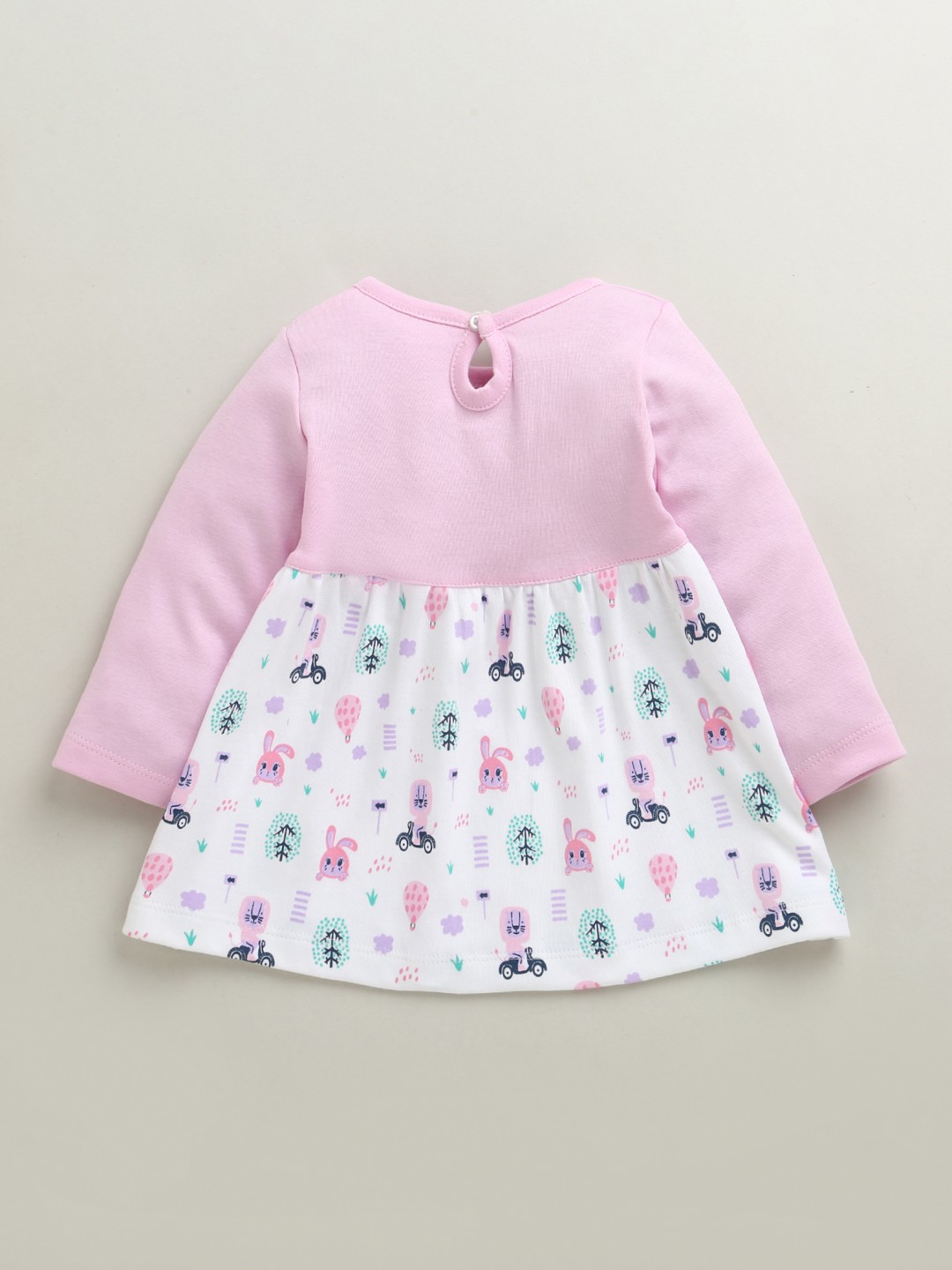 BUMZEE Pink & White Girls Full Sleeves Cotton Knee Length Frock