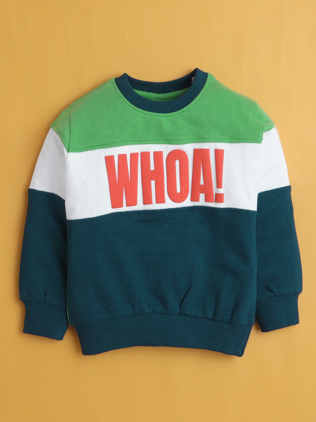 BUMZEE Light Green Boys Full Sleeves Cotton Sweatshirt