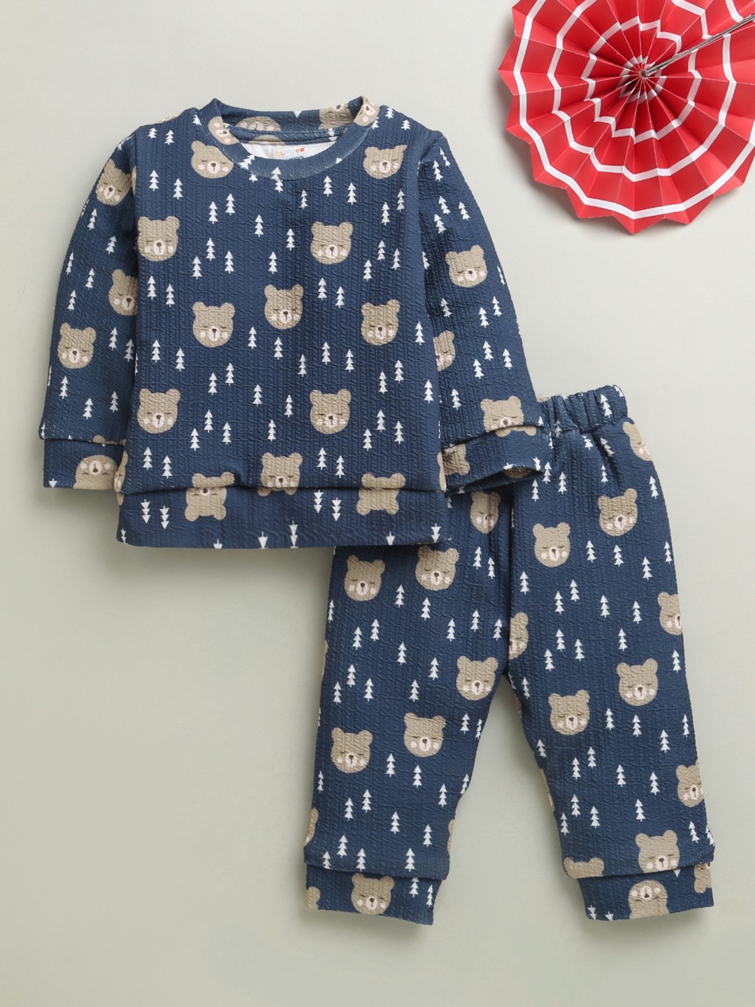 BUMZEE Blue Boys Full Sleeves Fleece Winter Wear Set