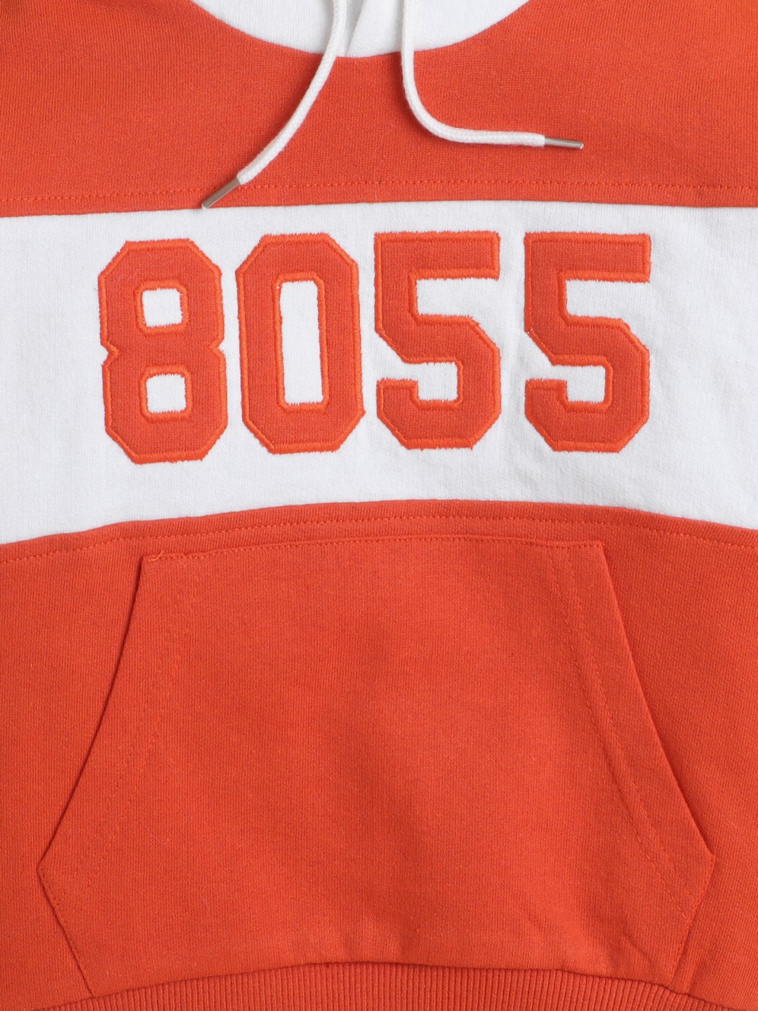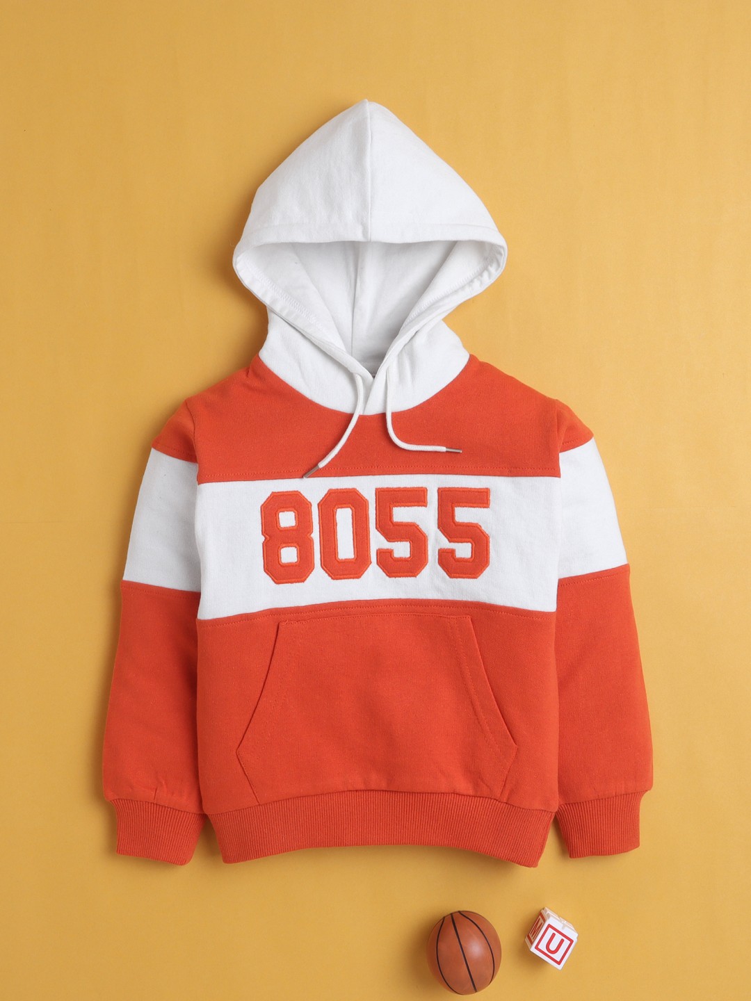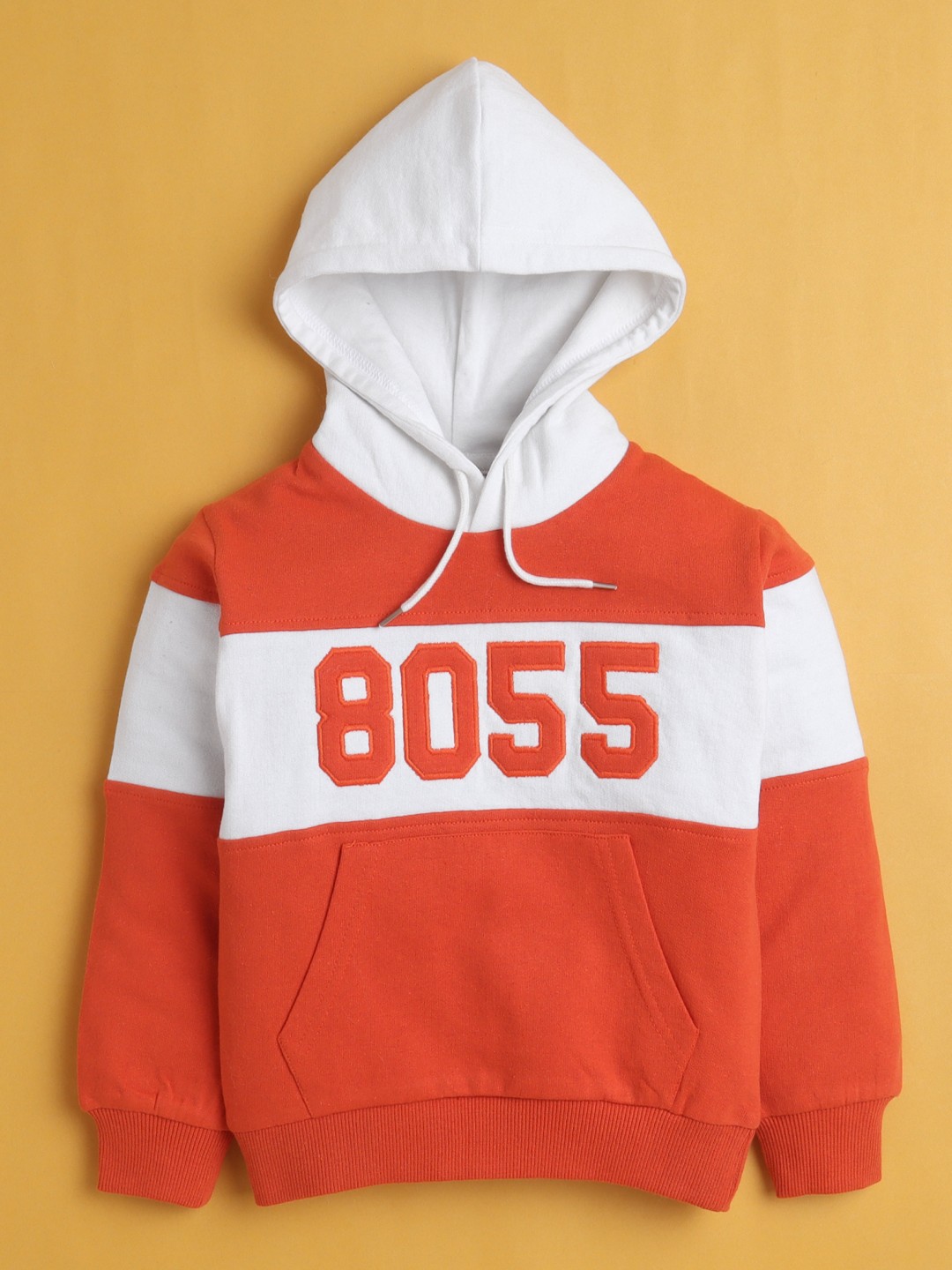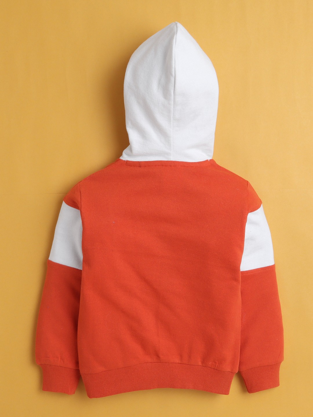 BUMZEE Orange Boys Full Sleeves Cotton Hooded Sweatshirt