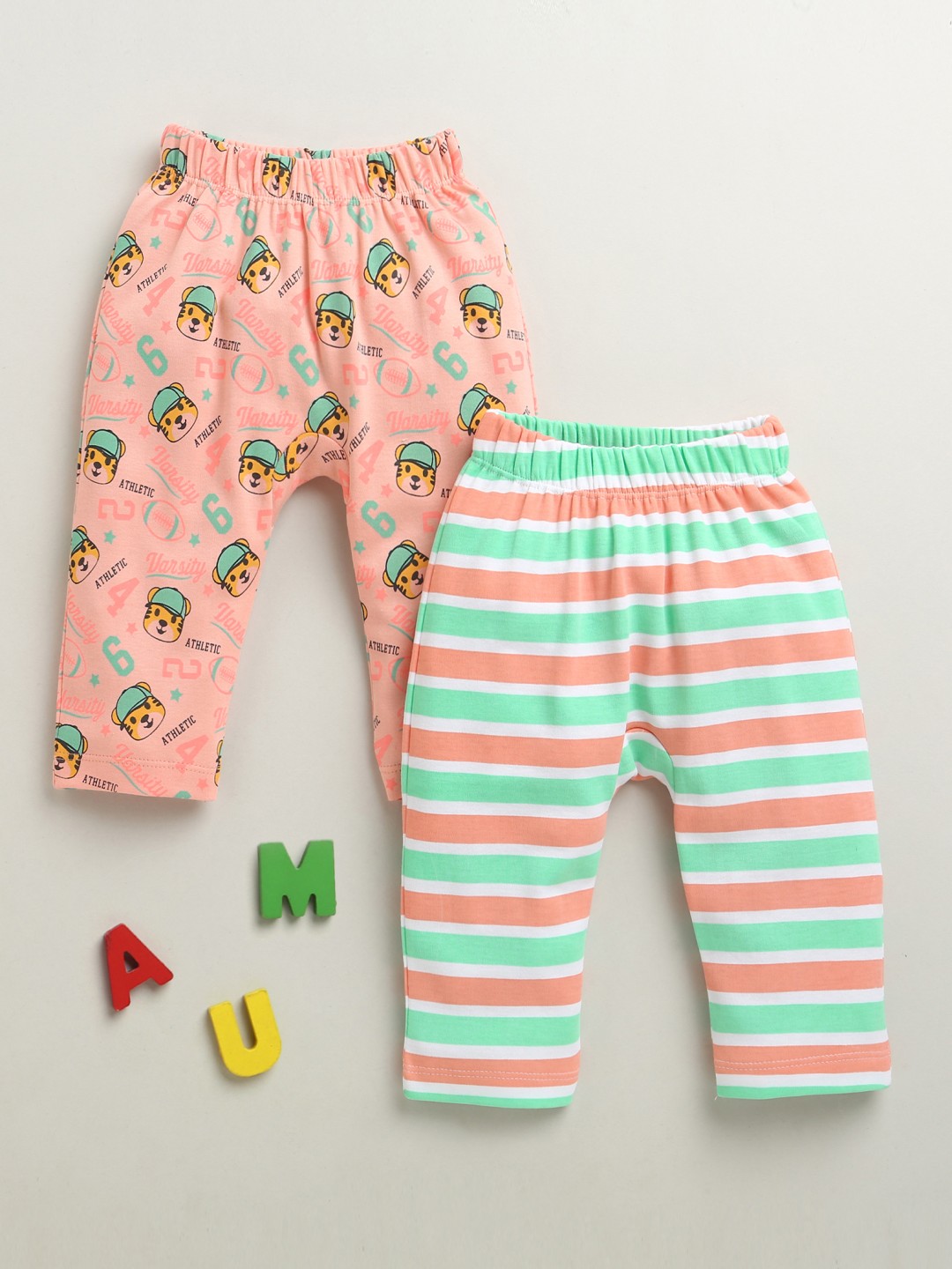 BUMZEE Peach & Multi Baby Boys Diaper Pants Leggings Pyjamas Pack Of 2