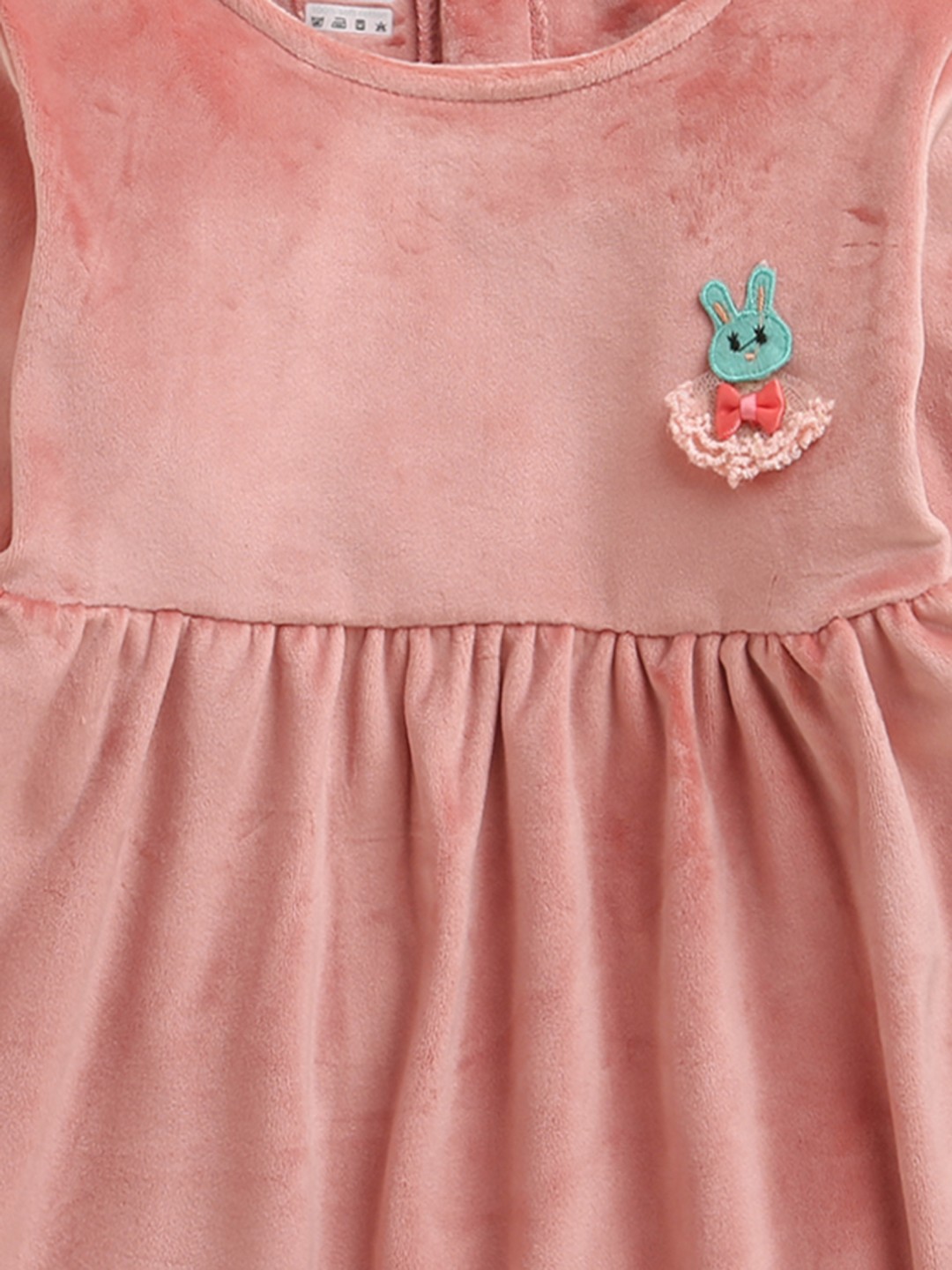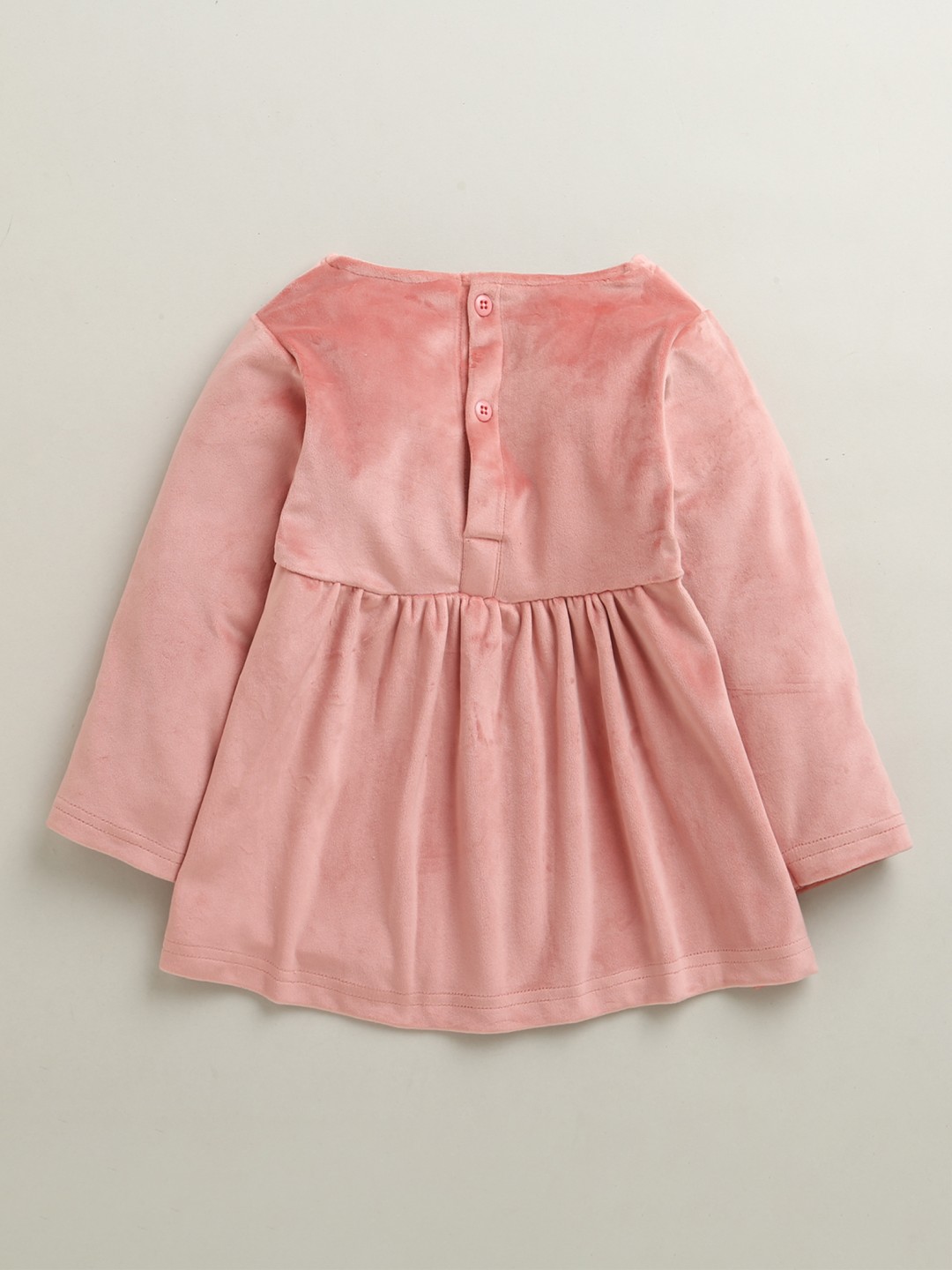 BUMZEE Pink Girls Full Sleeves Poly Blend Frock Dress