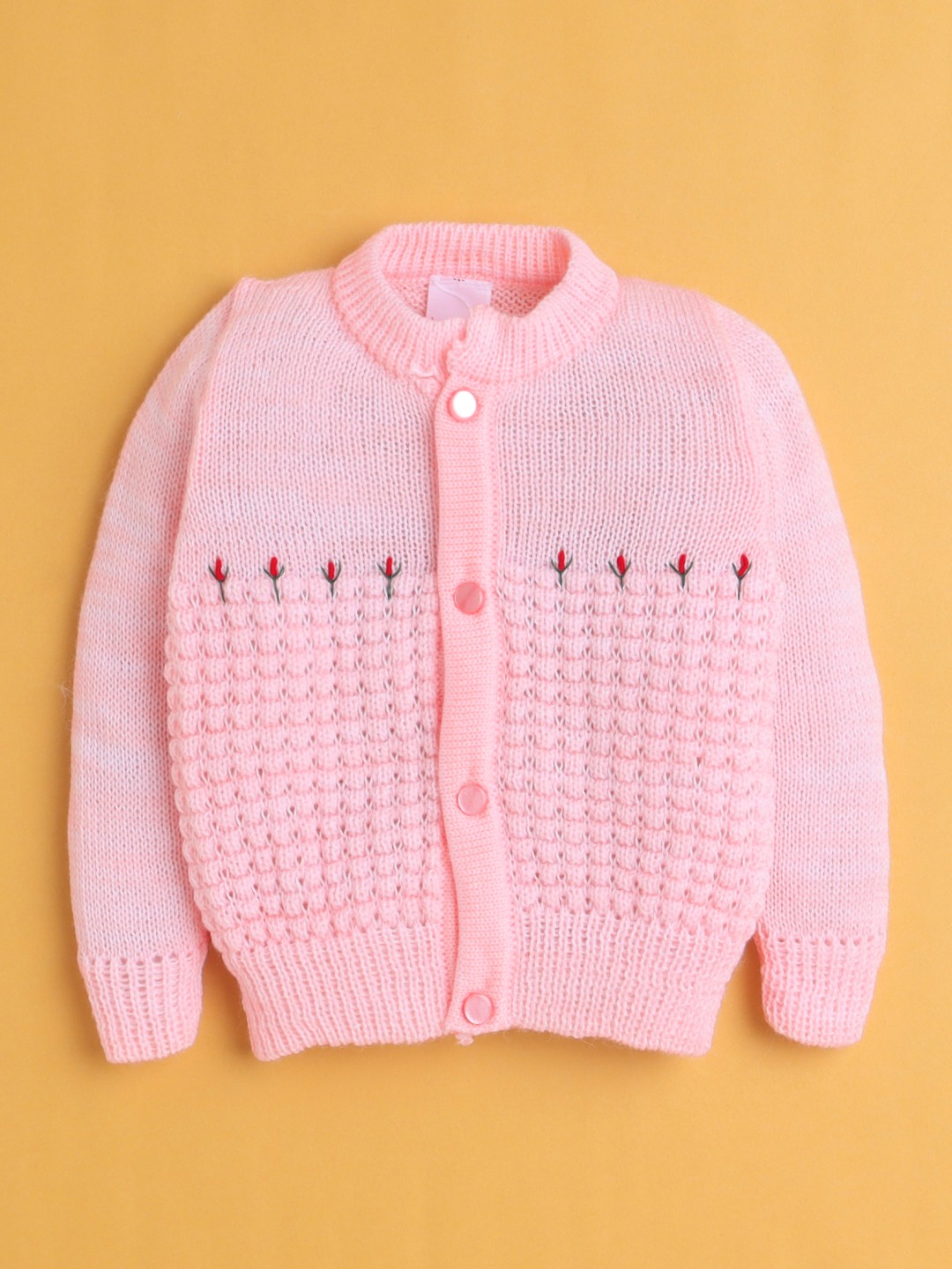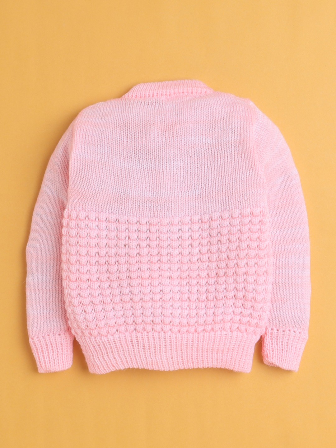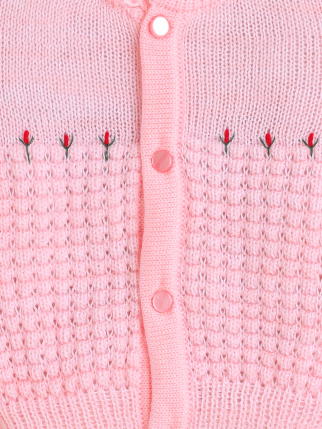 BUMZEE Pink Baby Girls Full Sleeves Acrylic Blend Sweater With Cap & Socks