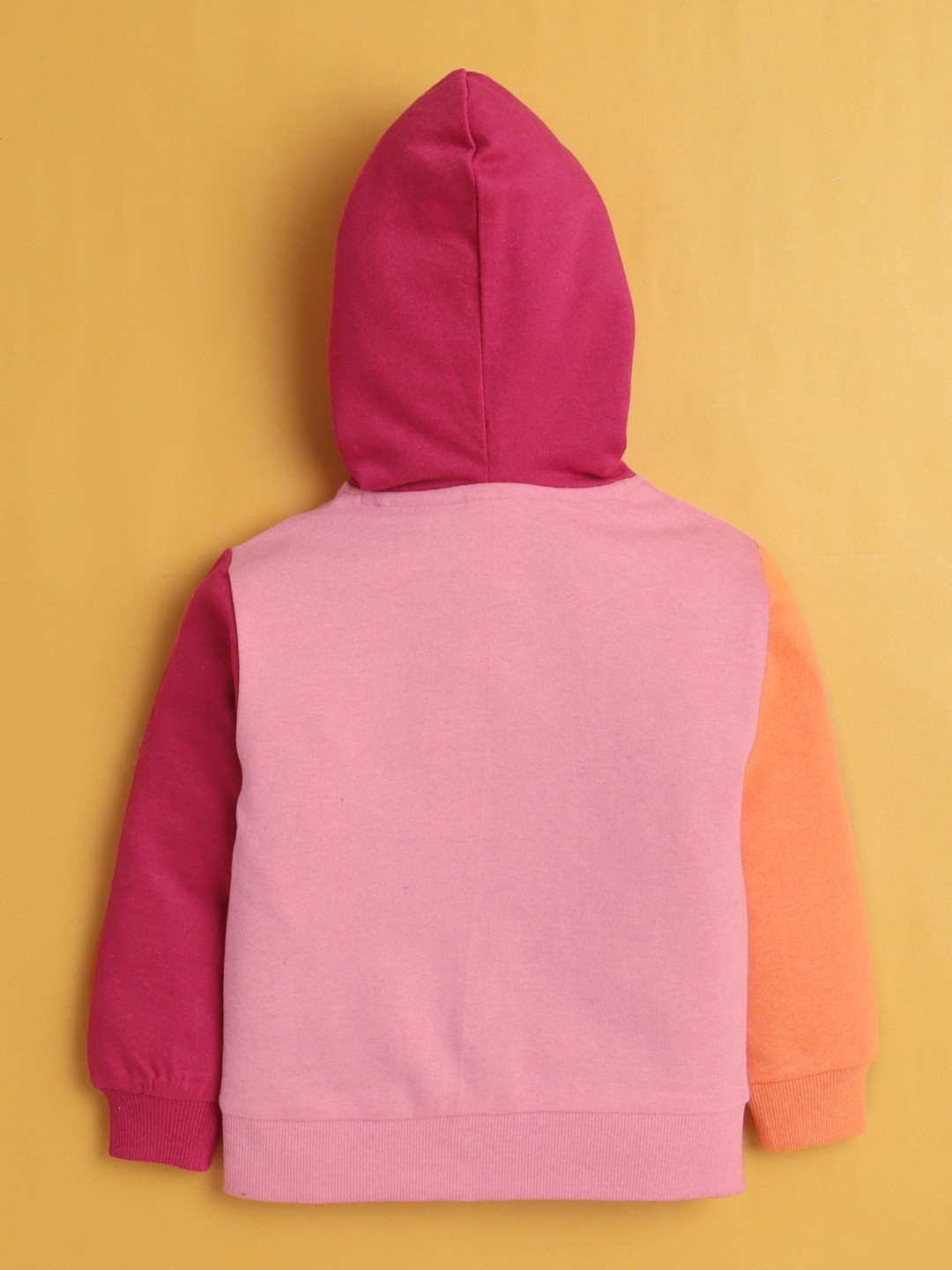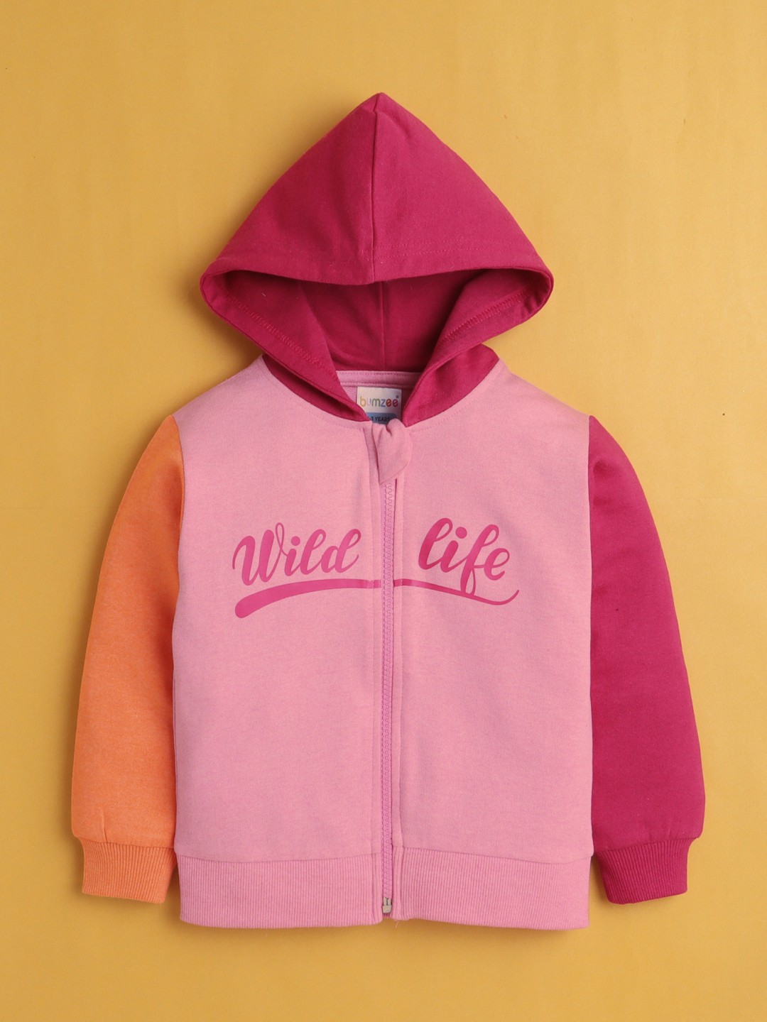 BUMZEE Pink Girls Full Sleeves Cotton Hooded Zipper Sweatshirt