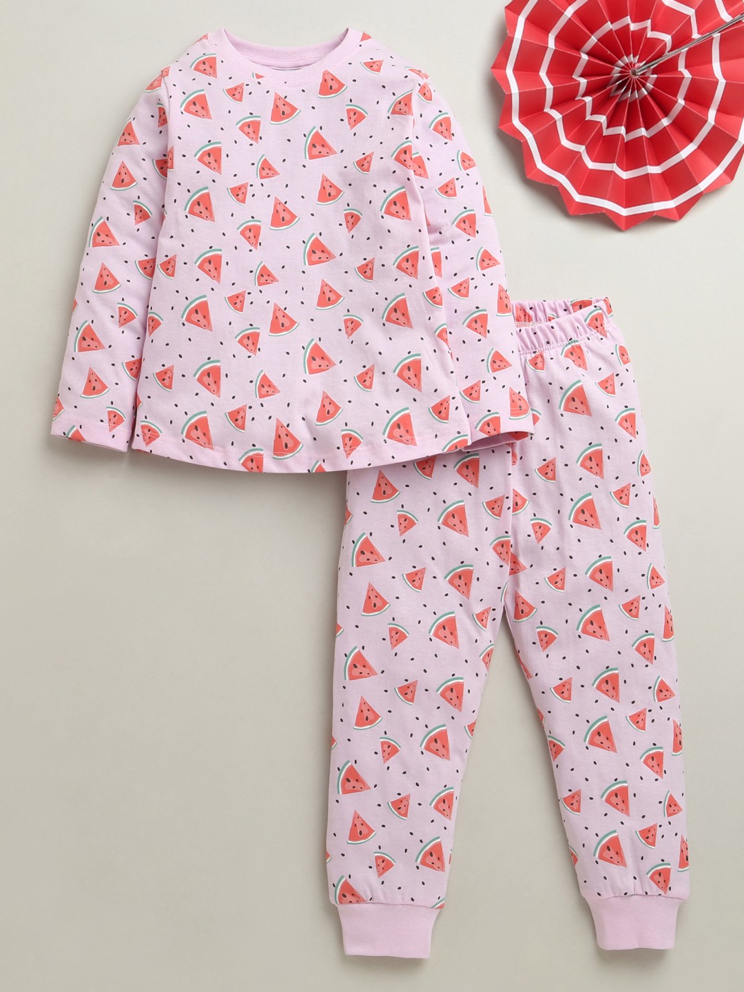 BUMZEE Pink Girls Full Sleeves Cotton T-Shirt & Pyjama Set