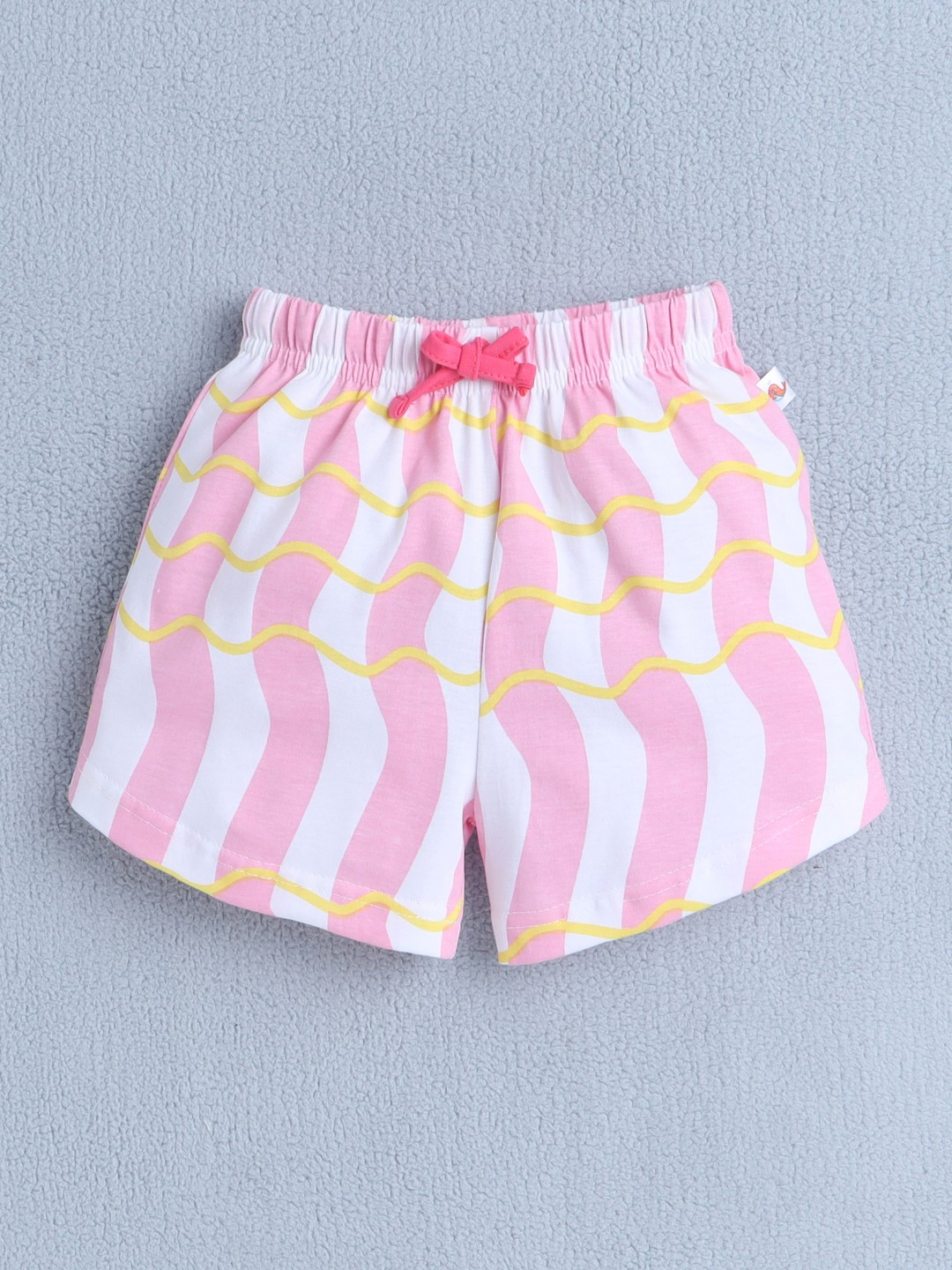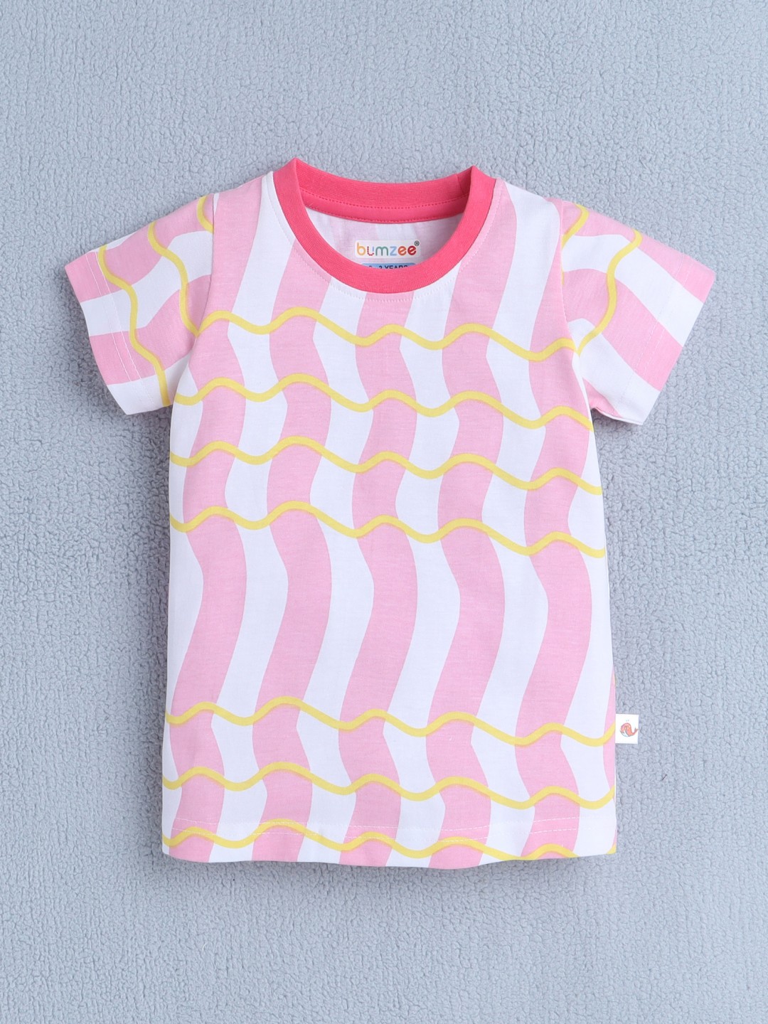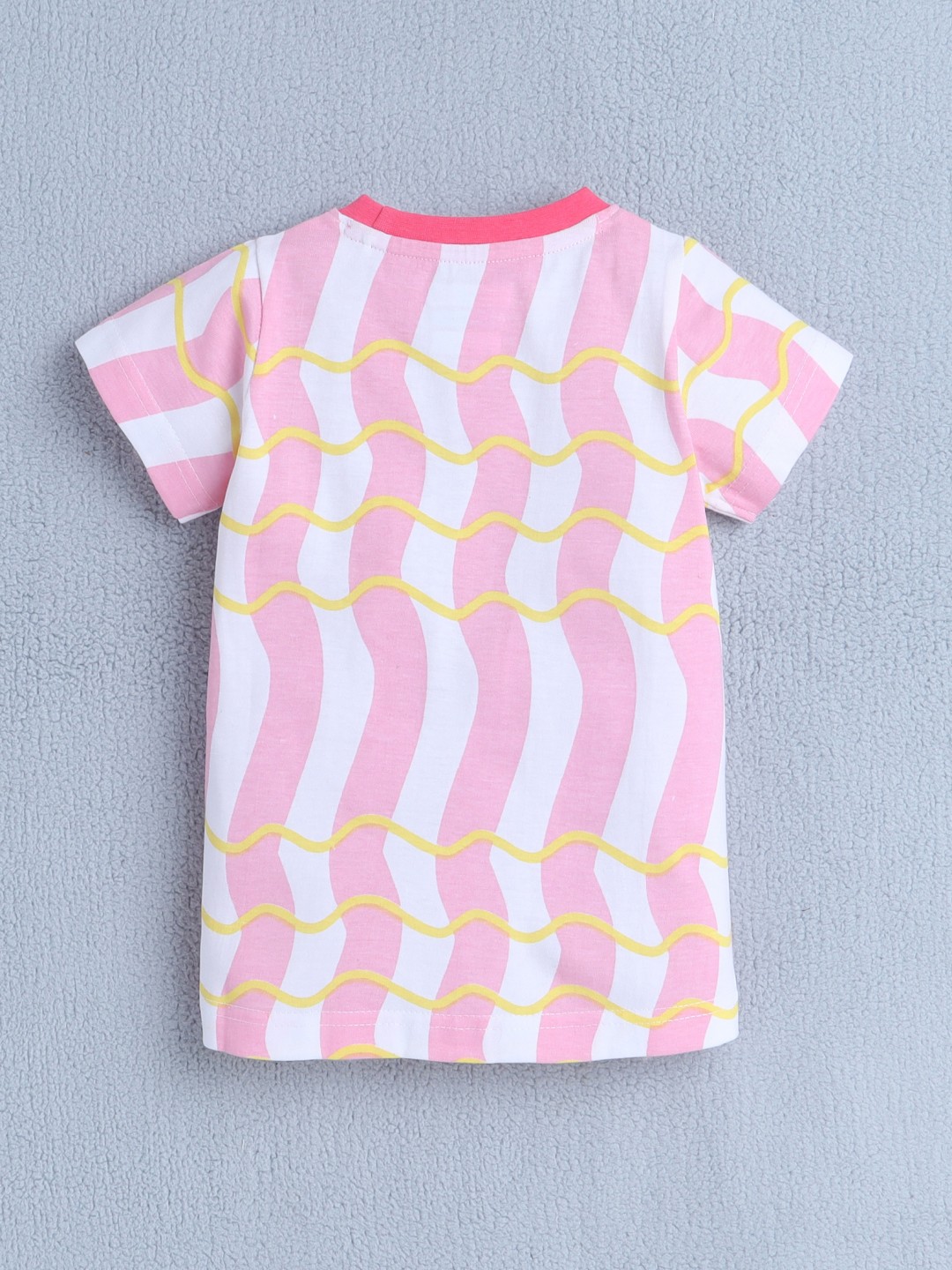 BUMZEE Pink & Yellow Girls Half Sleeves T-Shirt & Short Set