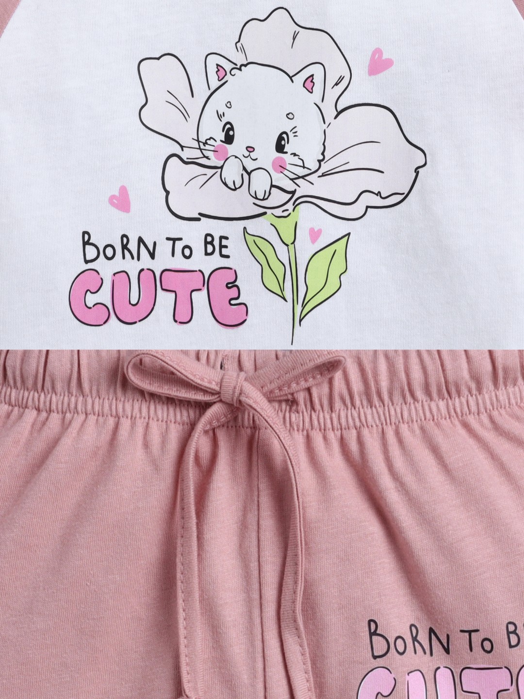 BUMZEE Pink Girls Half Sleeves T-Shirt & Pyjama Set