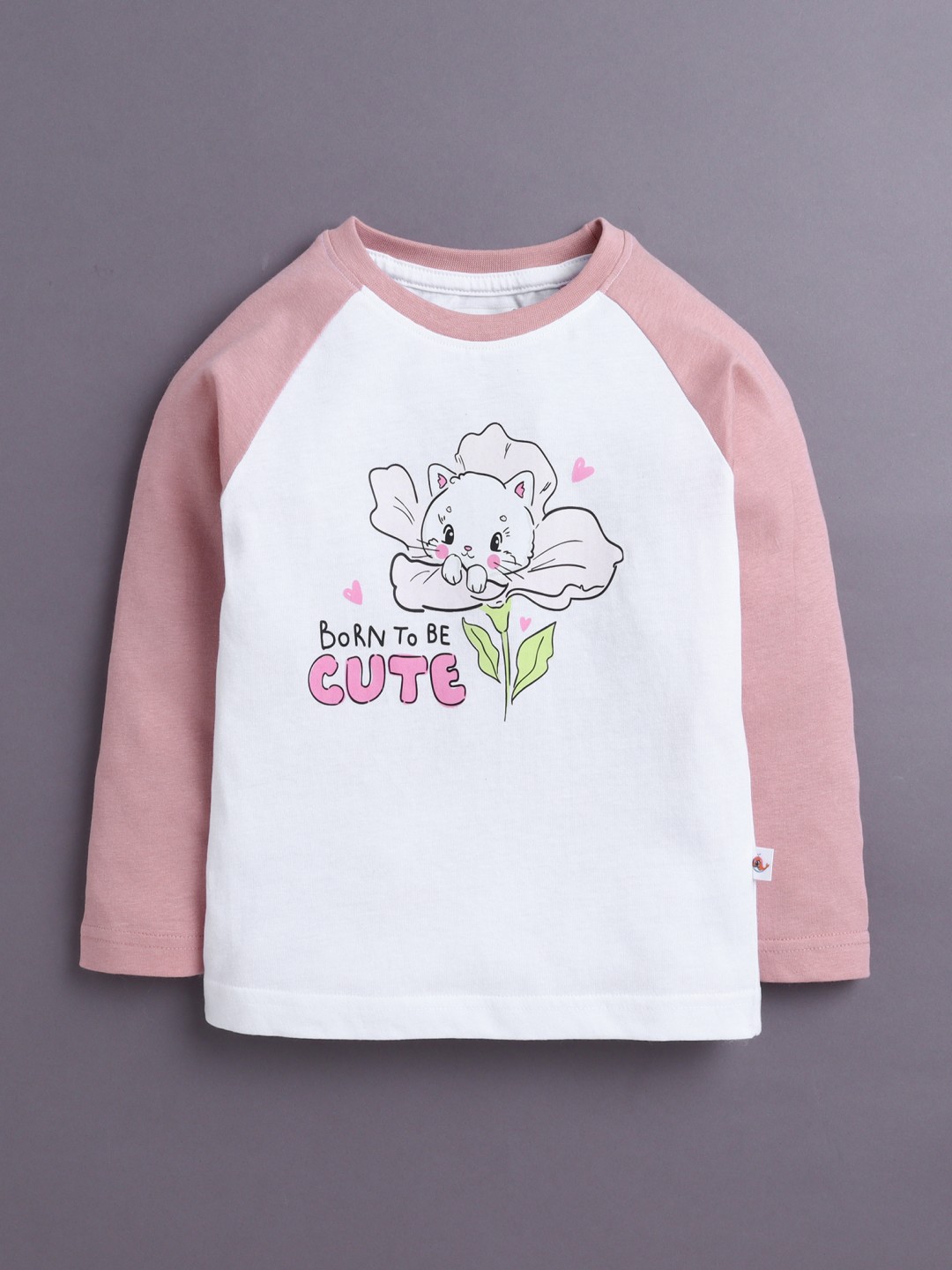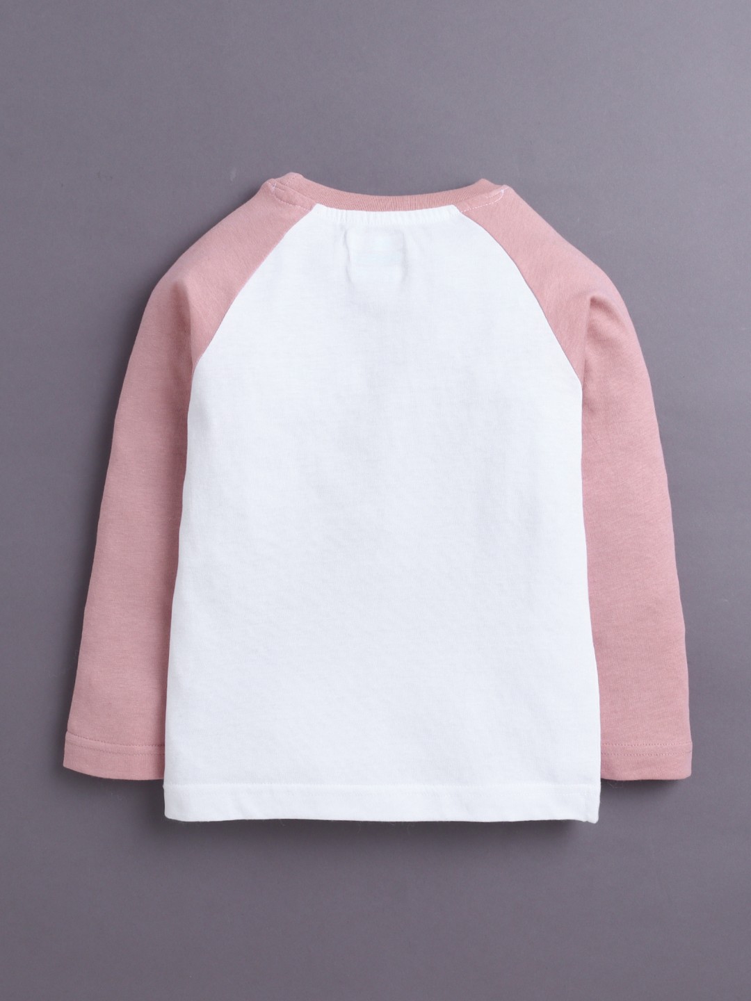 BUMZEE Baby Pink & White Girls Full Sleeves T-Shirt & Pyjama Set