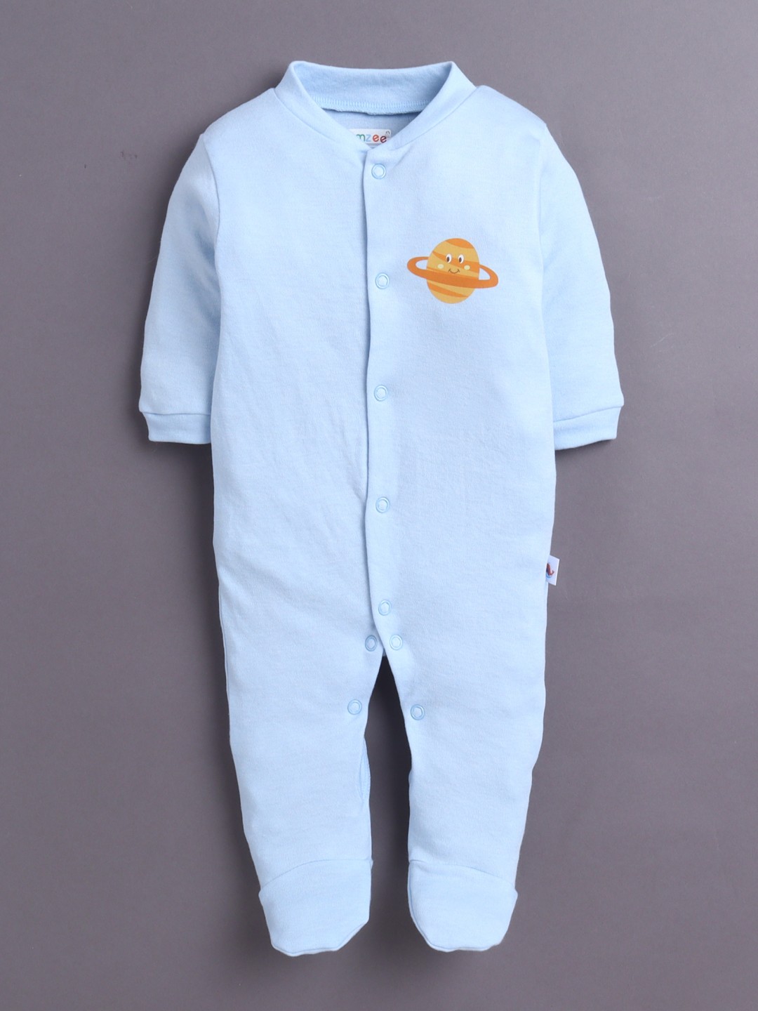 BUMZEE Sky Blue & White Baby Boys Full Sleeves Sleepsuit Pack Of 3