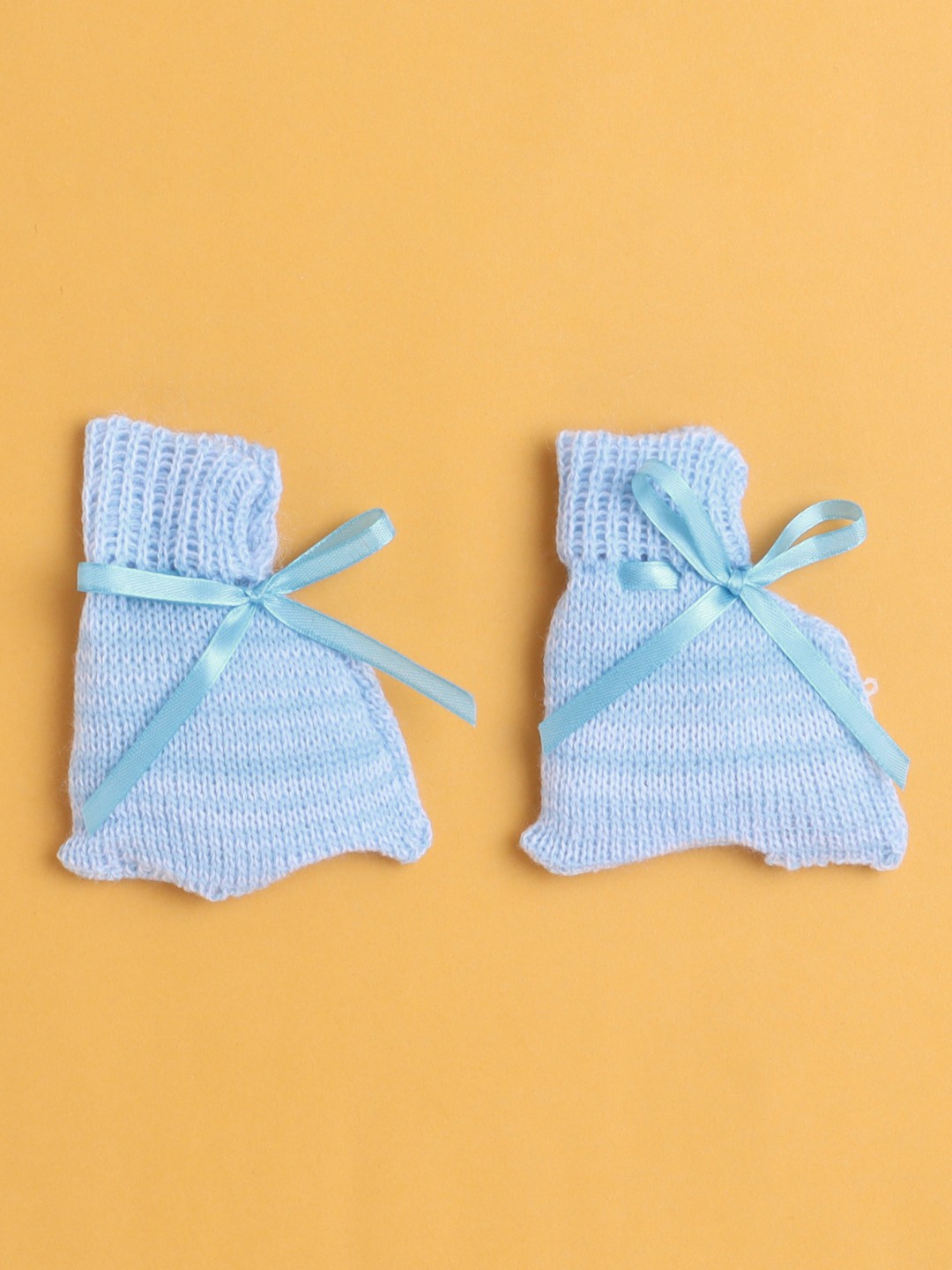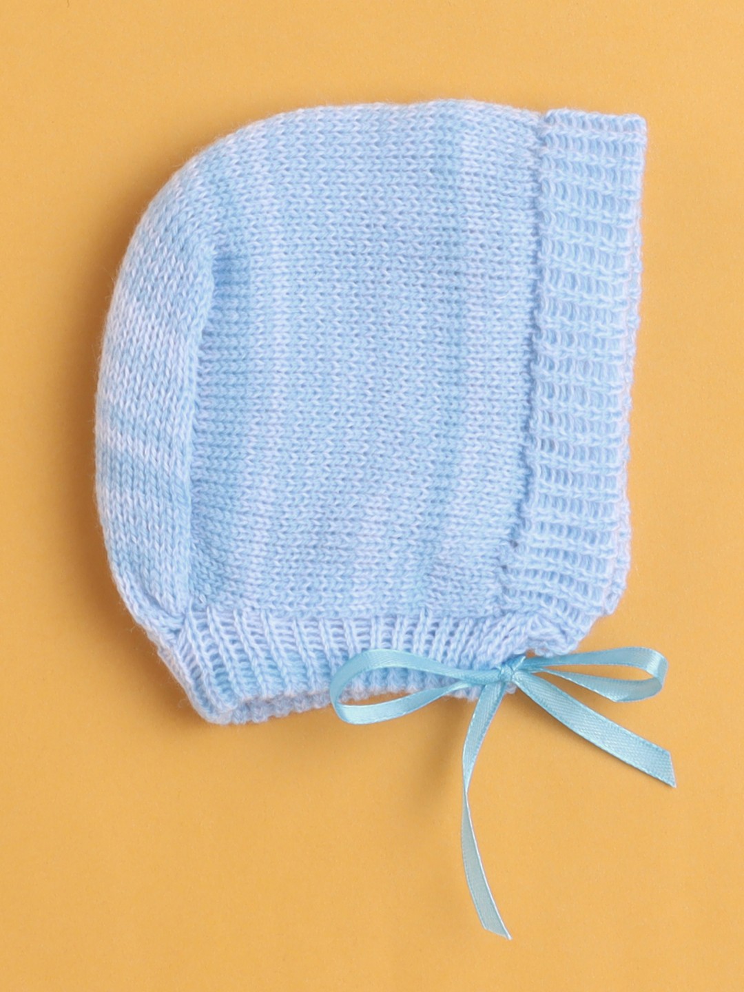 BUMZEE Blue Baby Boys Full Sleeves Acrylic Blend Sweater With Cap & Socks