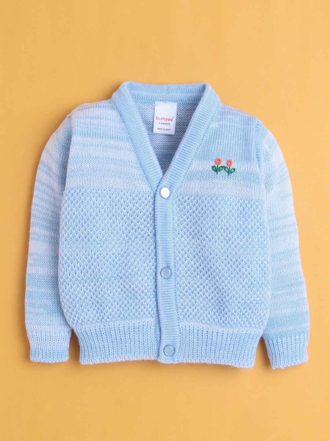 BUMZEE Aqua Baby Boys Full Sleeves Acrylic Blend Sweater With Cap & Socks