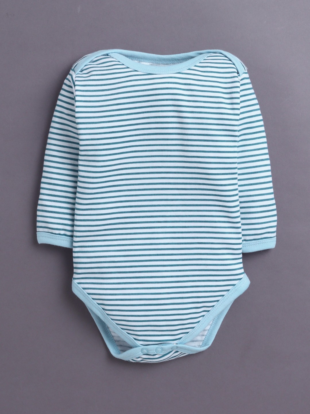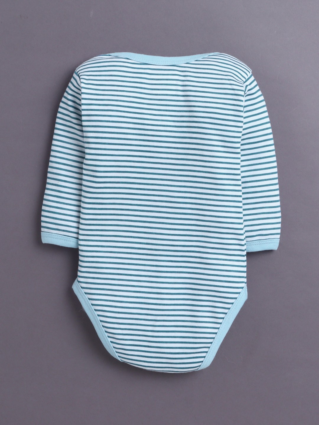 BUMZEE Sky Blue & White Baby Boys Full Sleeves Cotton Bodysuit Onesies Pack Of 3