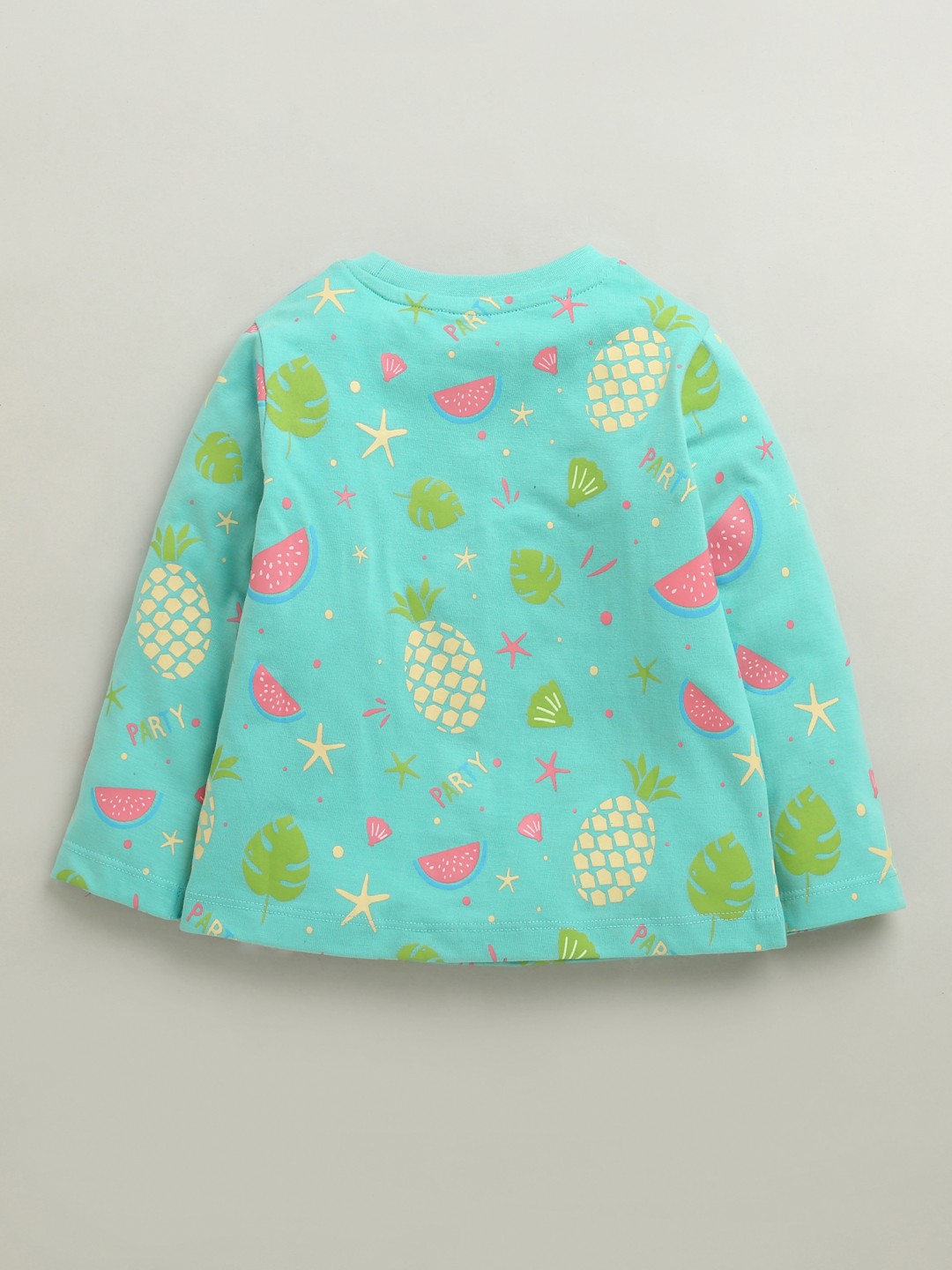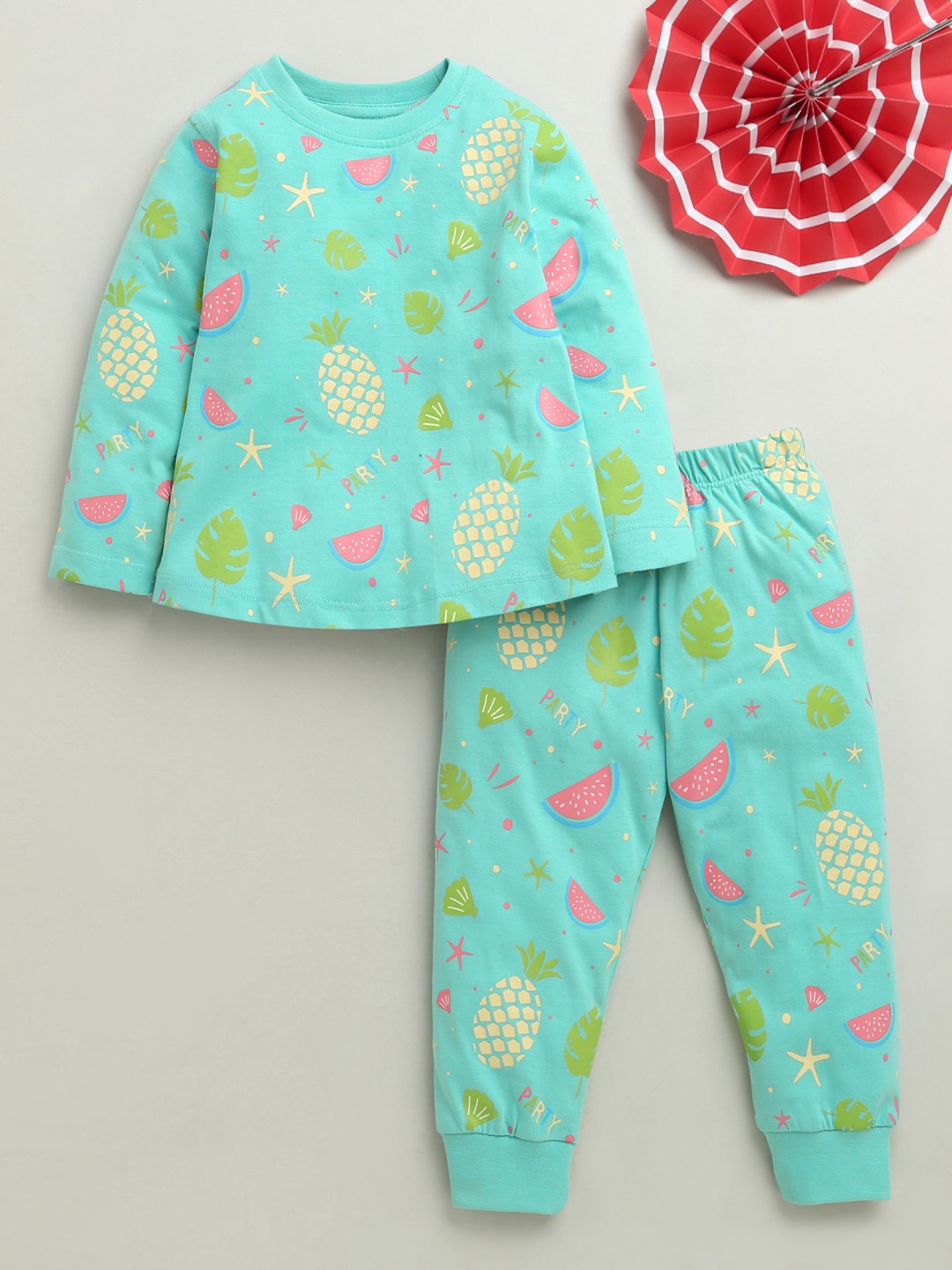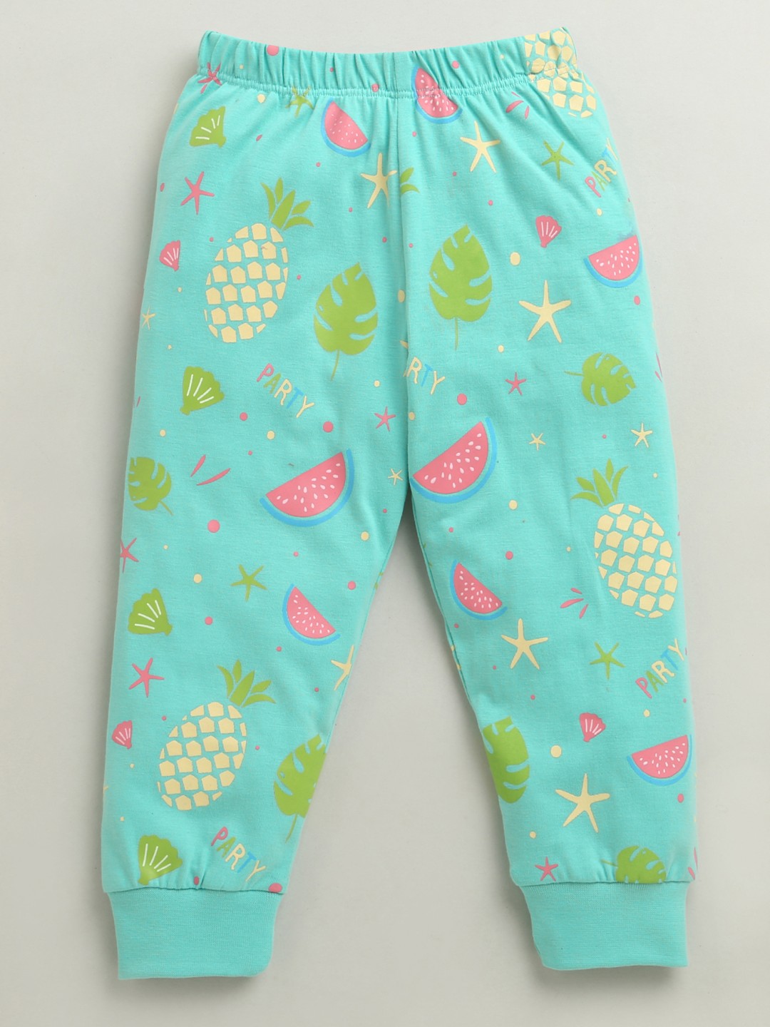 BUMZEE Turquoise Girls Full Sleeves Cotton T-Shirt & Pyjama Set