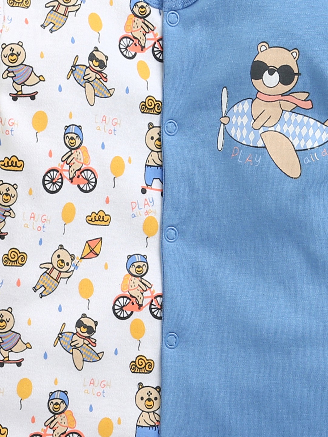 BUMZEE White & Navy Boys Full Sleeves Fashion Trendy Sleepsuit