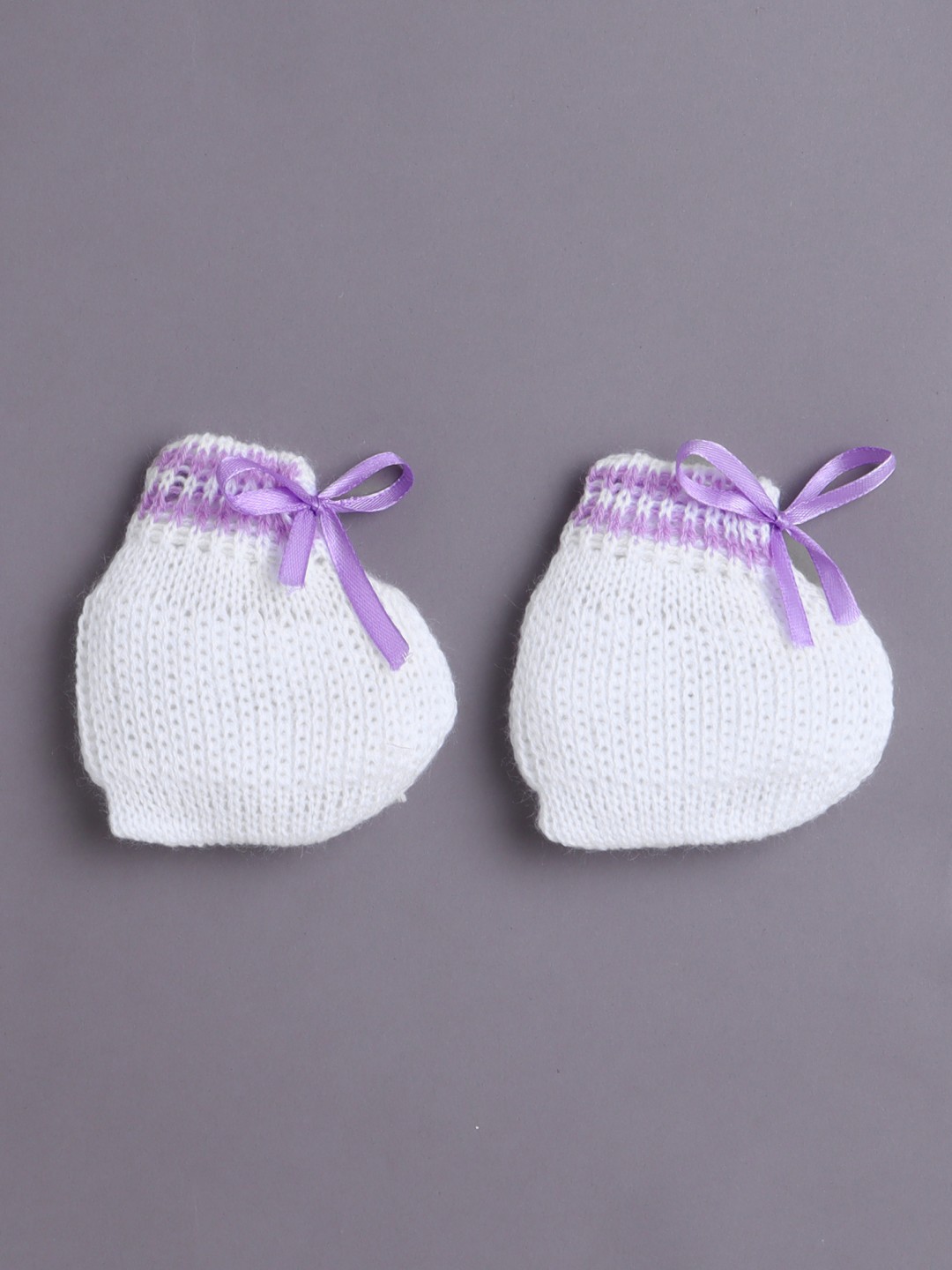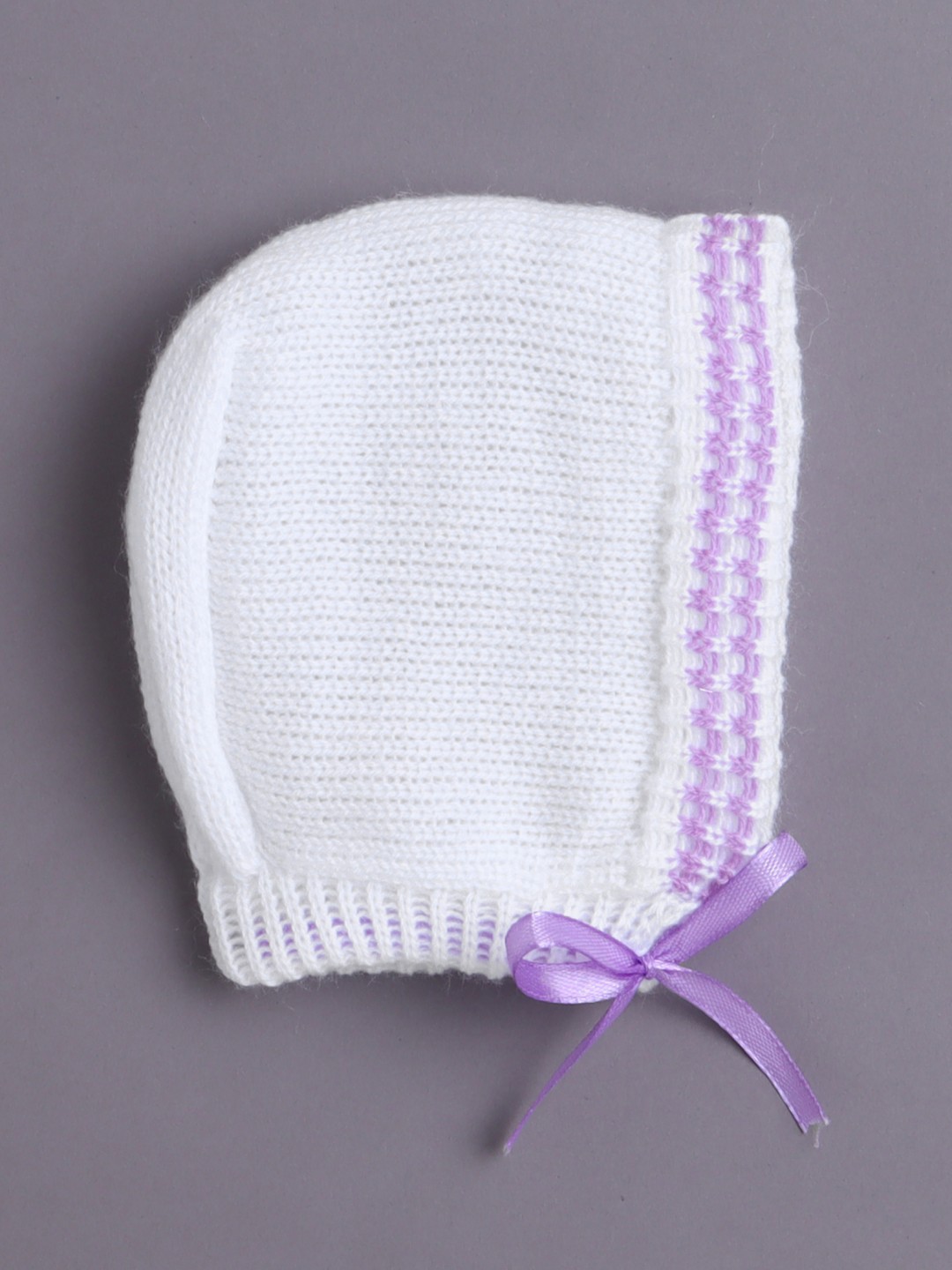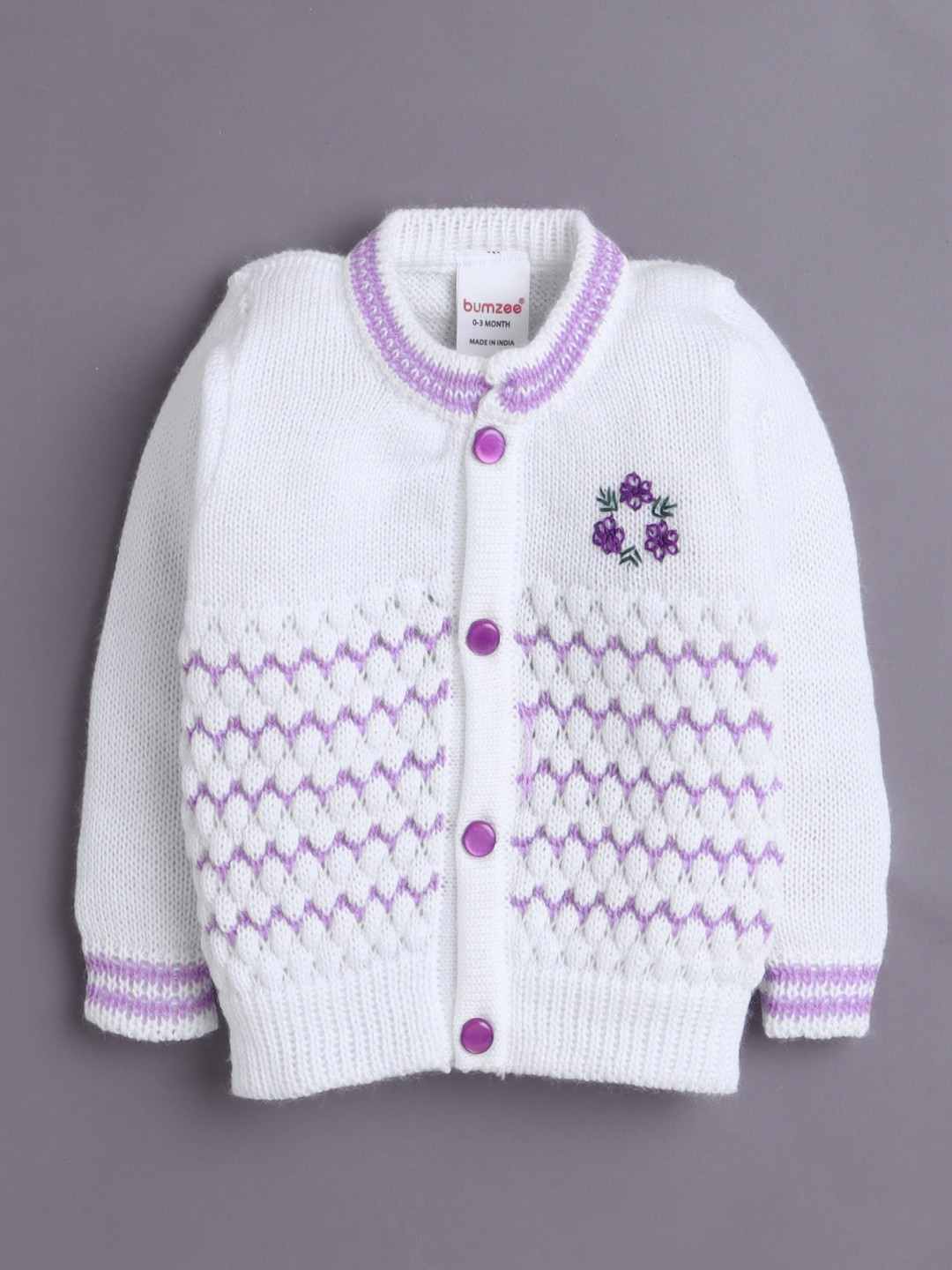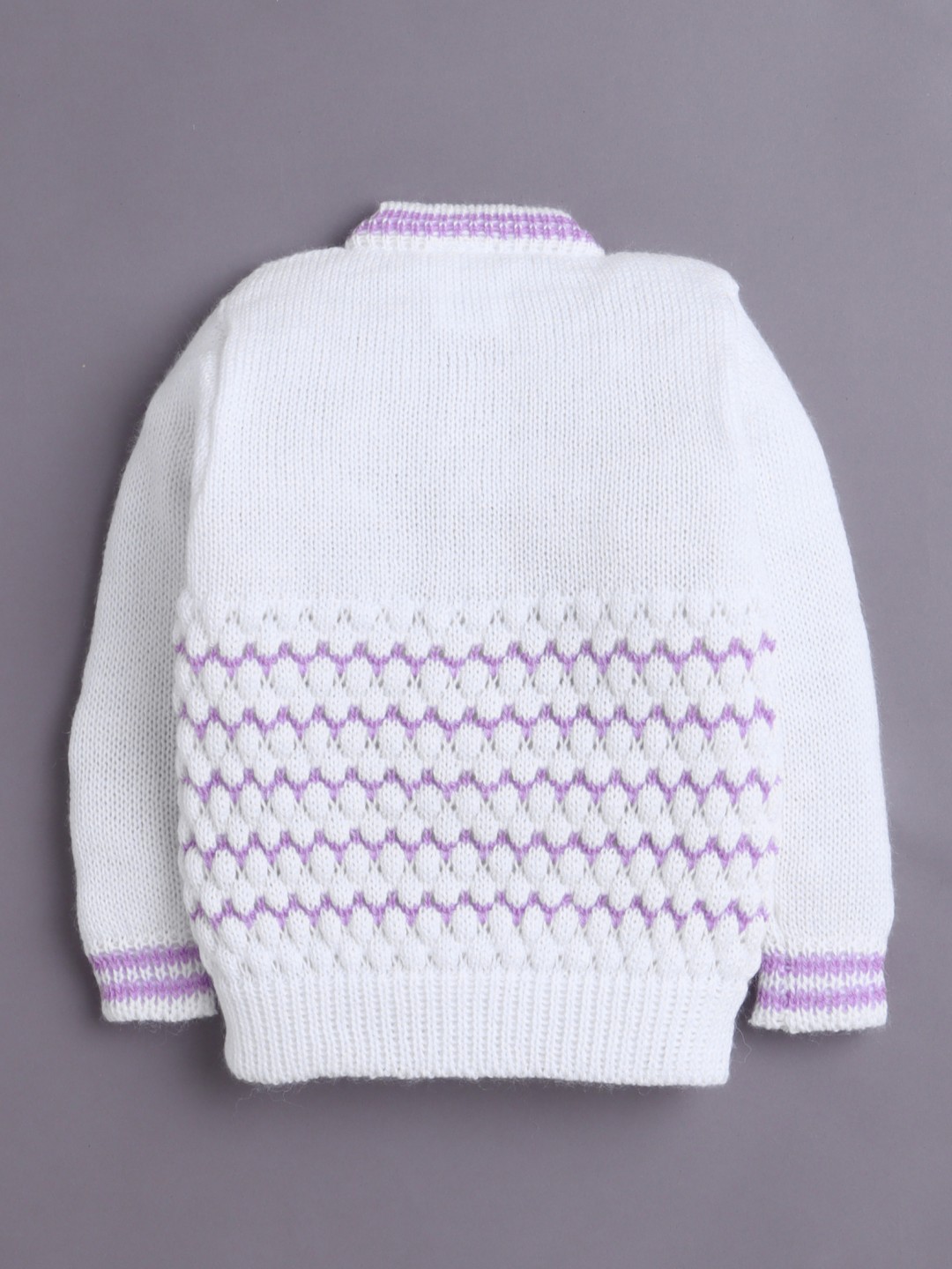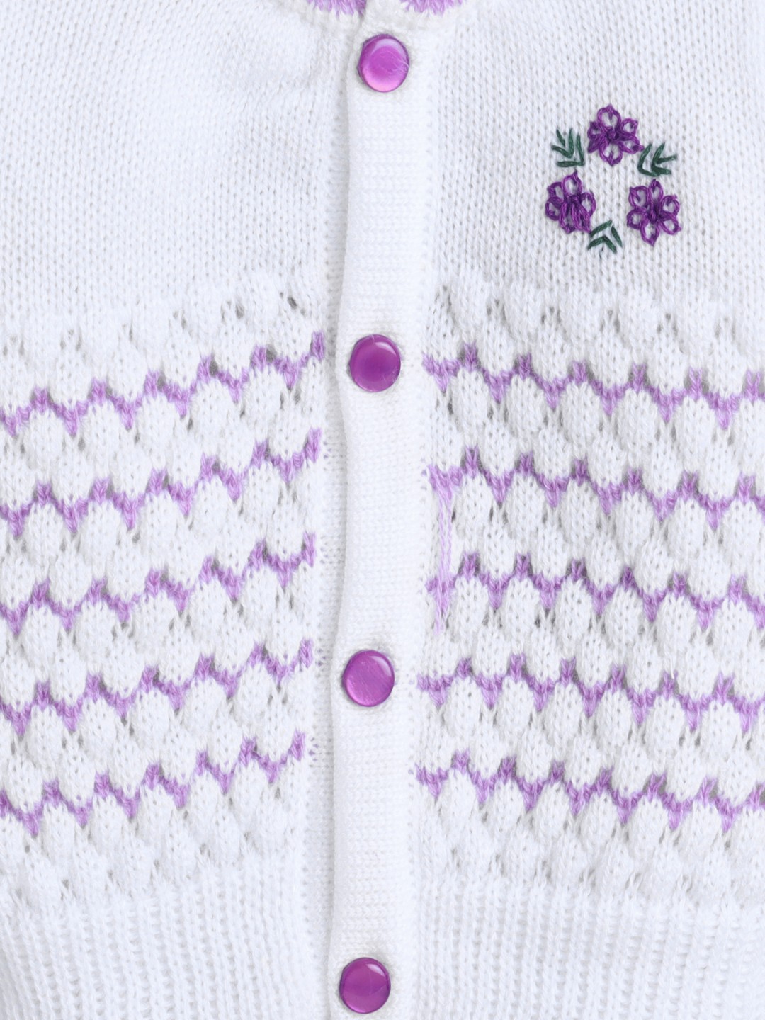 BUMZEE White & Lavender Baby Girls Full Sleeves Acrylic Blend Sweater With Cap & Socks