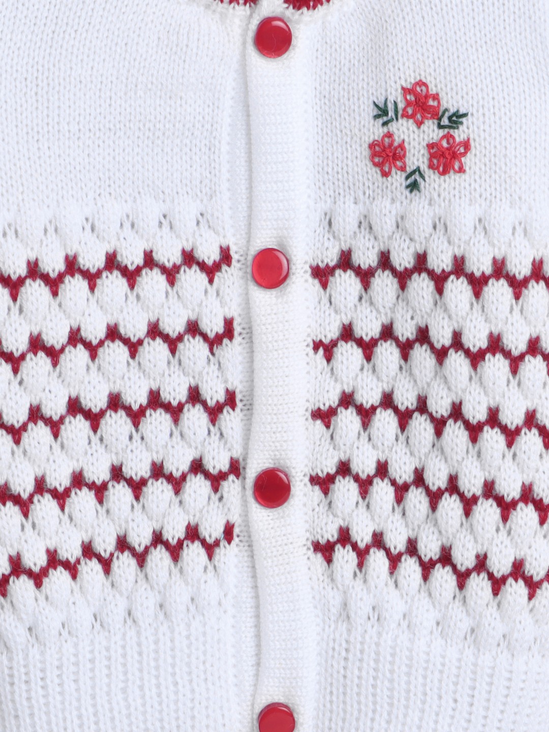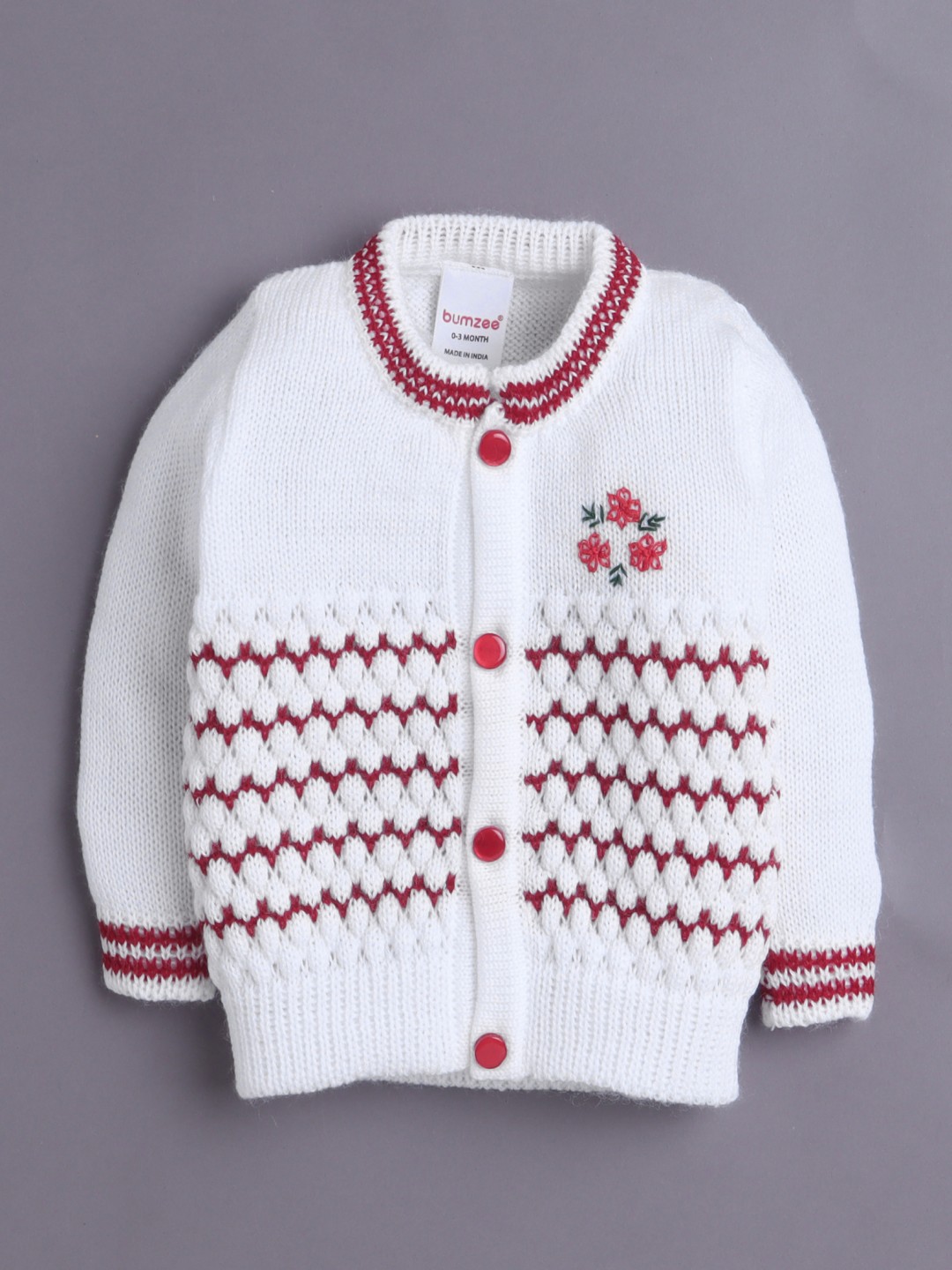 BUMZEE Red Baby Boys Full Sleeves Acrylic Blend Sweater With Cap & Socks