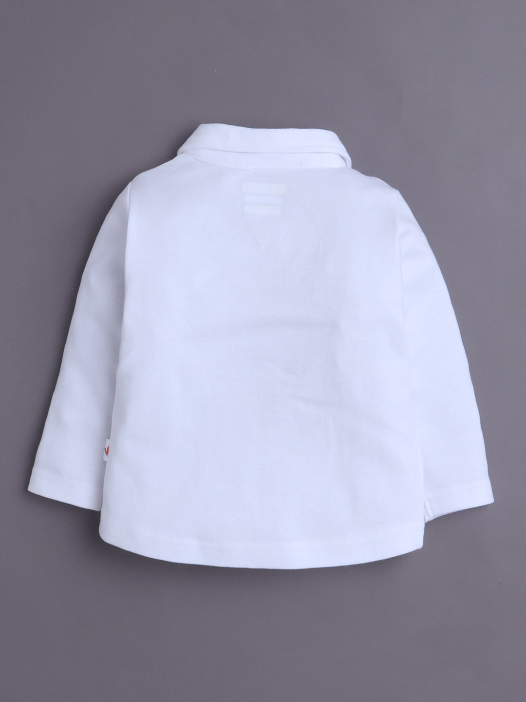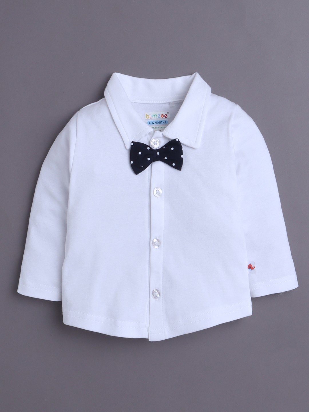 BUMZEE Maroon & White Boys Full Sleeves Shirt Waistcoat & Short Set With Applique Bow