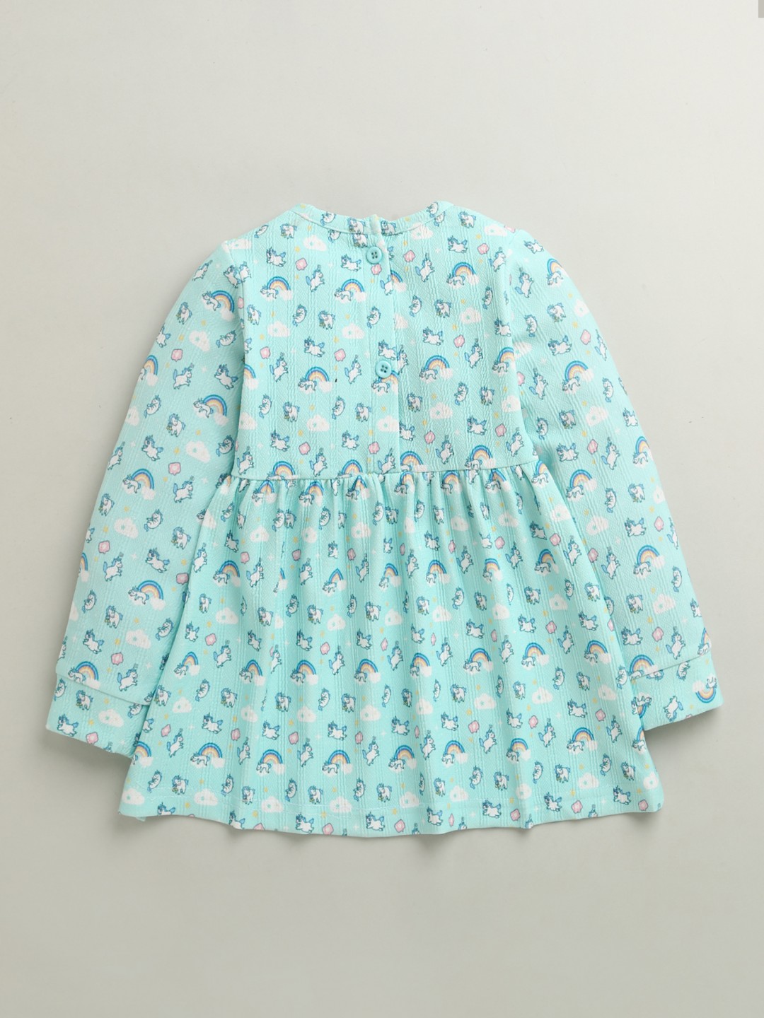 BUMZEE Teal Girls Full Sleeves Poly Blend Frock Dress