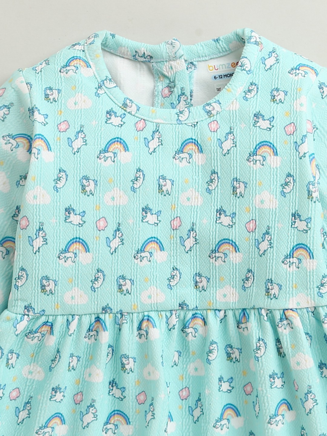 BUMZEE Mint Green Girls Full Sleeves Poly Blend Frock Dress
