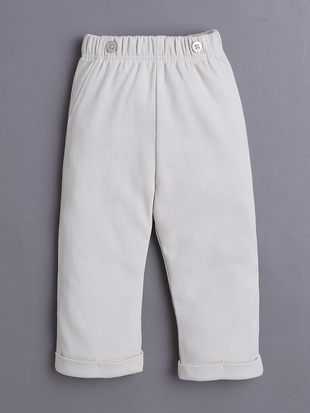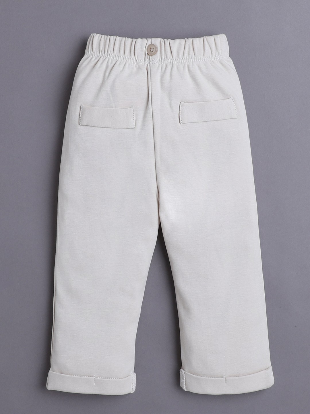 BUMZEE Beige & Navy Boys Full Sleeves Shirt Waistcoat & Pant Set With Applique Bow