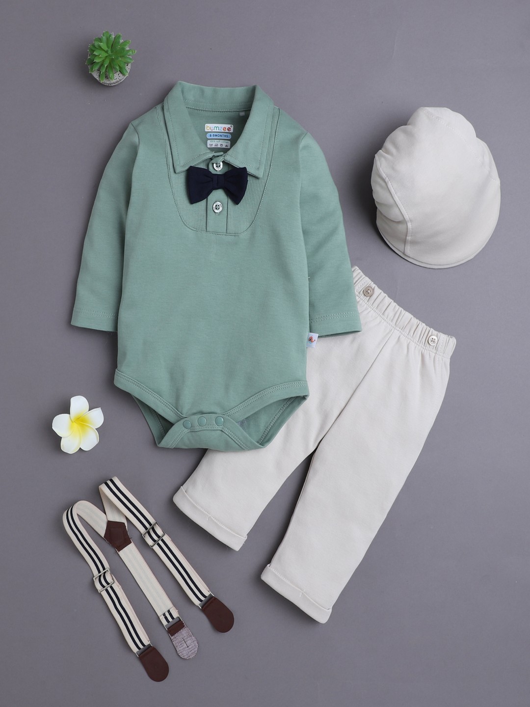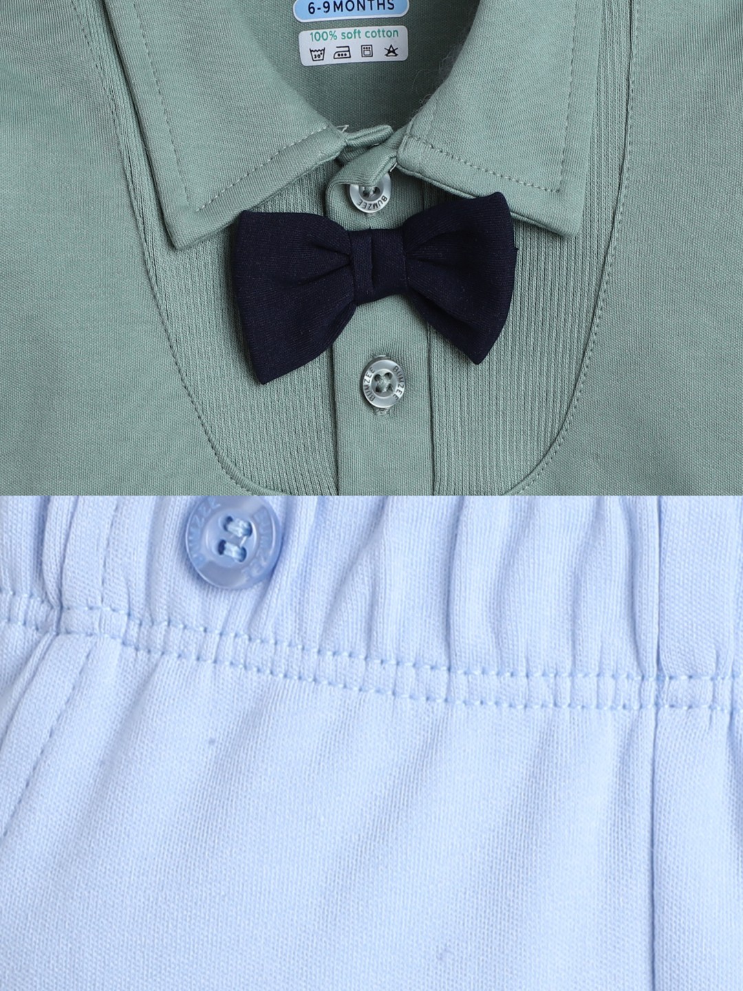 This bodysuit set with suspenders is perfect for dressing up your little one. Made from soft, breathable material, it offers maximum comfort and easy wear. The attached suspenders add a dapper touch, making it ideal for formal gatherings, family photos, or festive celebrations.