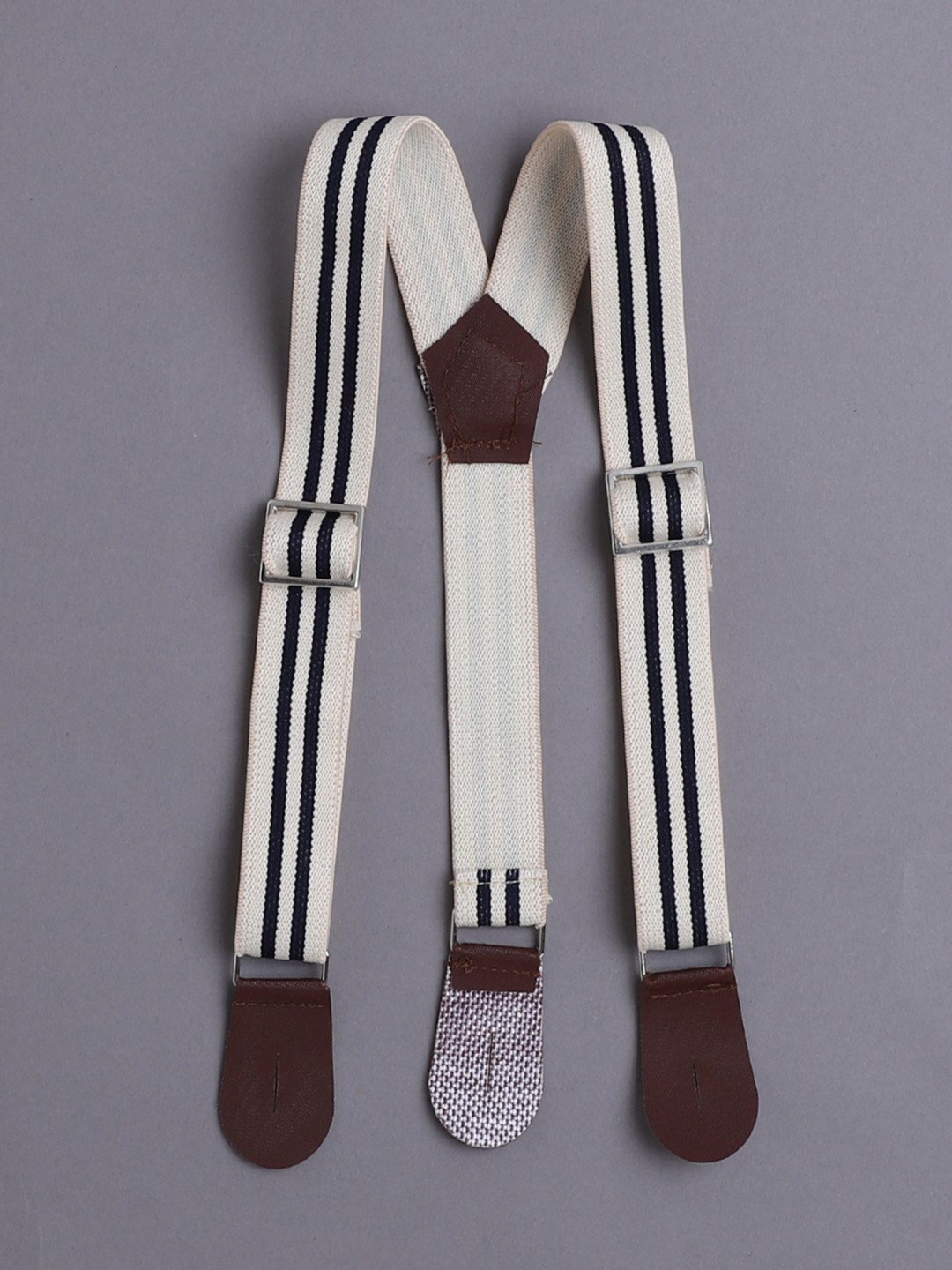 BUMZEE Navy & White Boys Full Sleeves Shirt Pant Set With Suspender & Cap