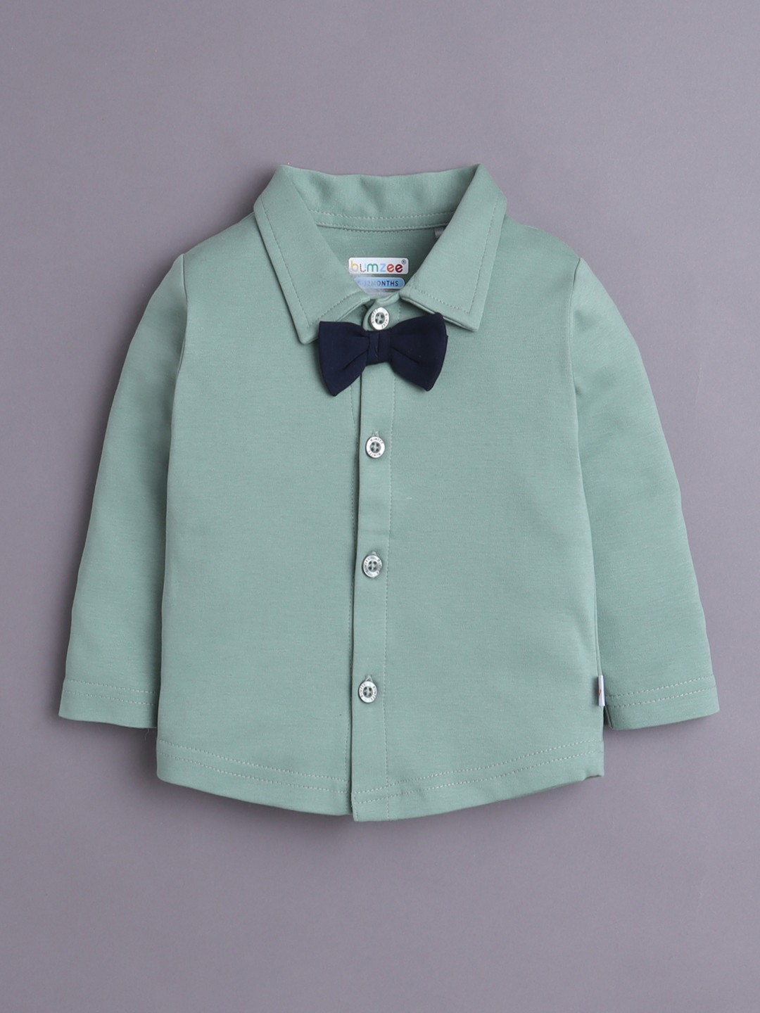 BUMZEE Sky Blue & White Boys Full Sleeves Shirt Waistcoat & Pant Set With Applique Bow