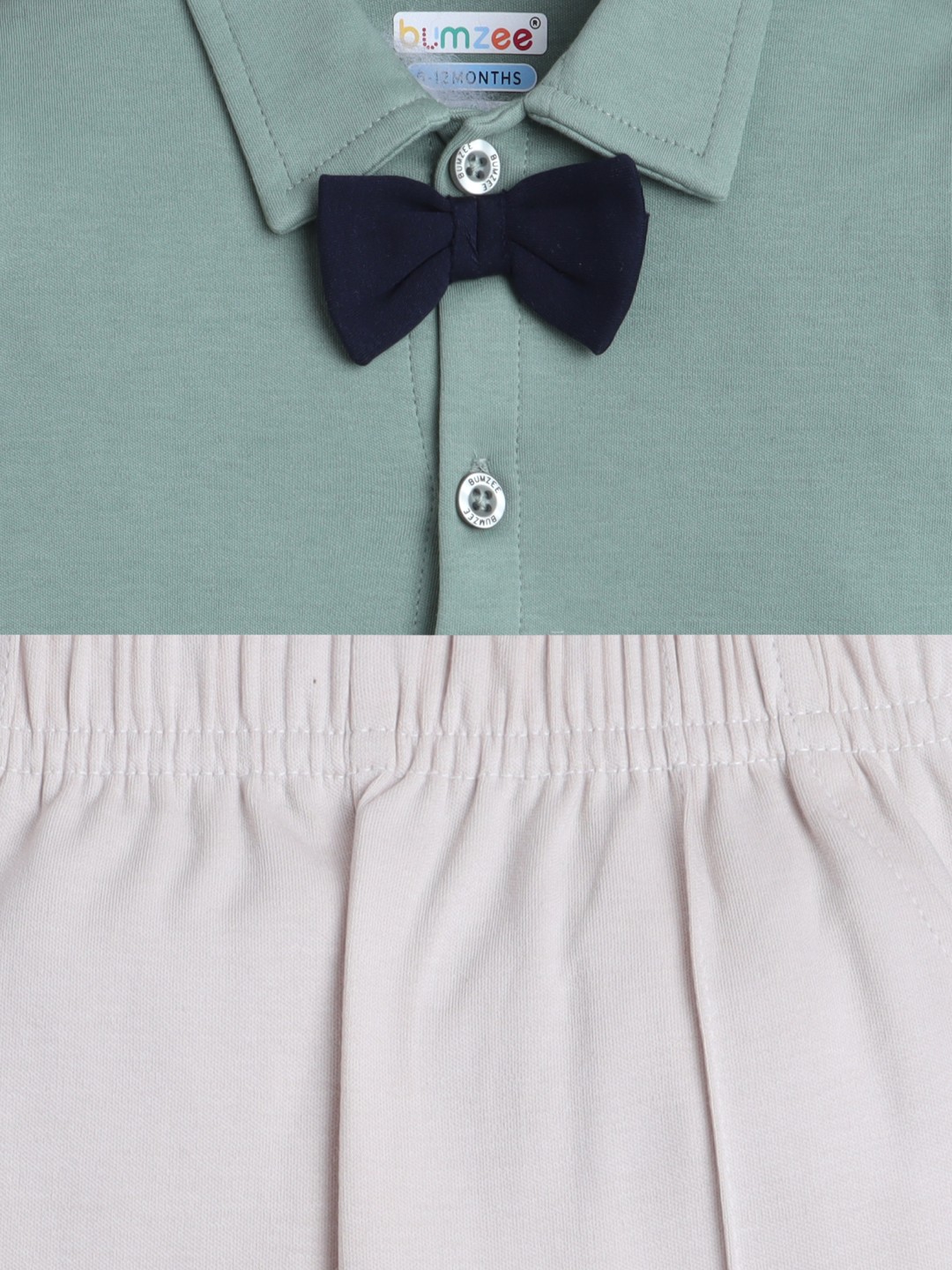 BUMZEE Navy & White Boys Half Sleeves Shirt & Short Set With Bow Suspender & Cap