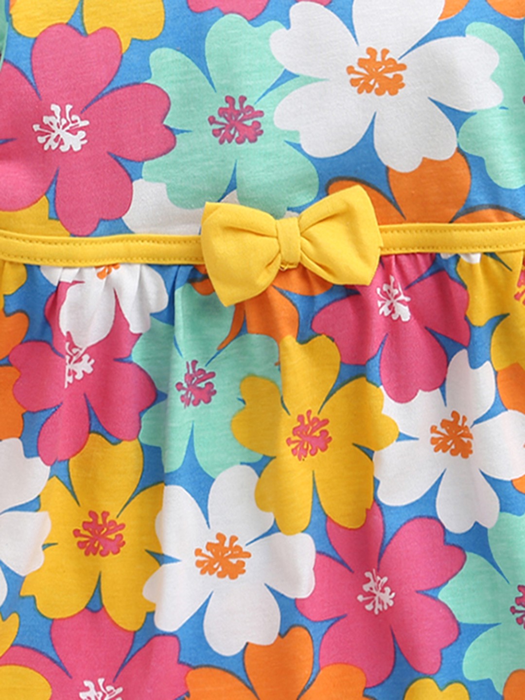 BUMZEE Navy Girls Half Sleeves Cotton Knee Length Frock
