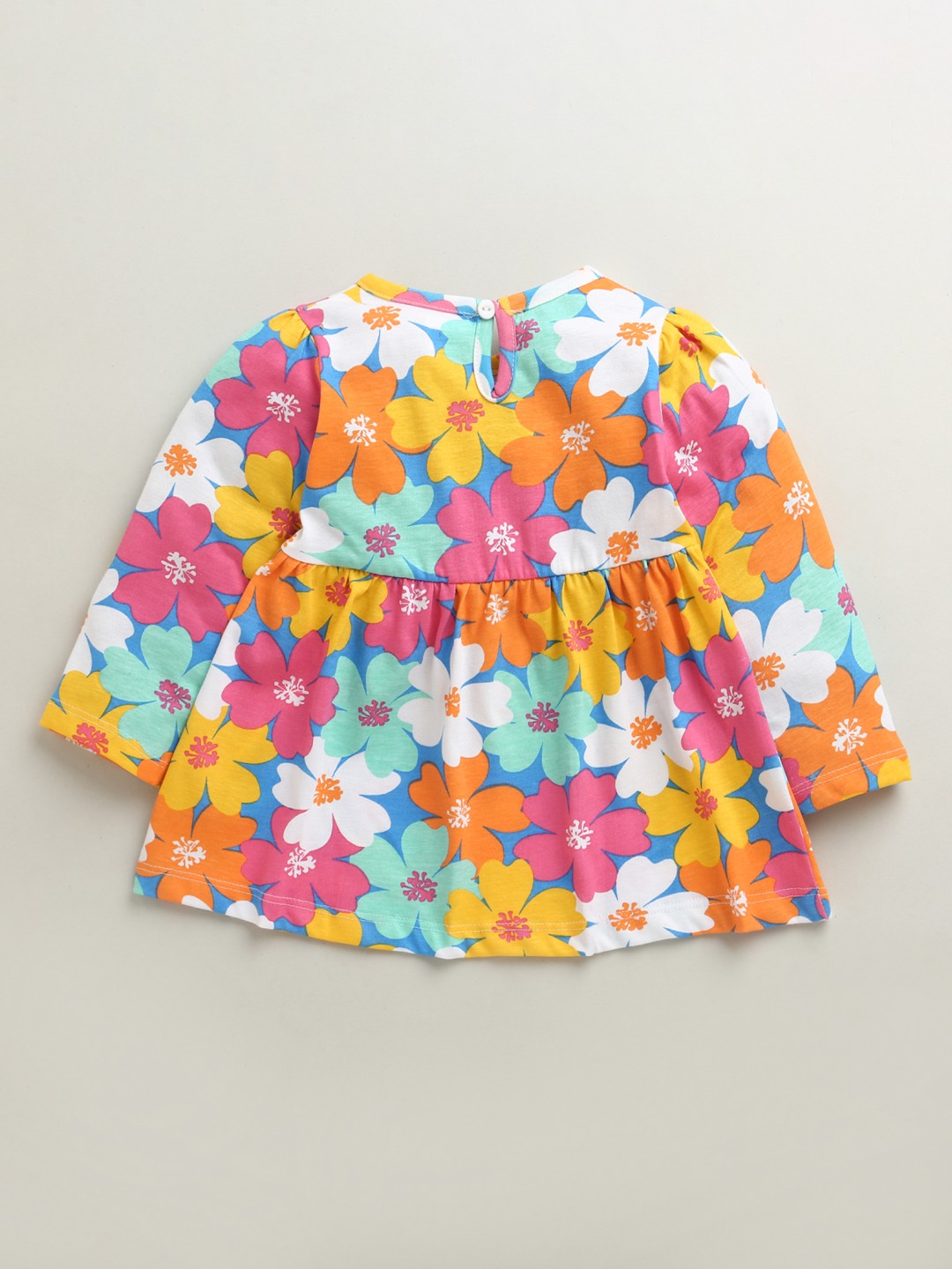 BUMZEE Peach Girls Full Sleeves Cotton Knee Length Frock