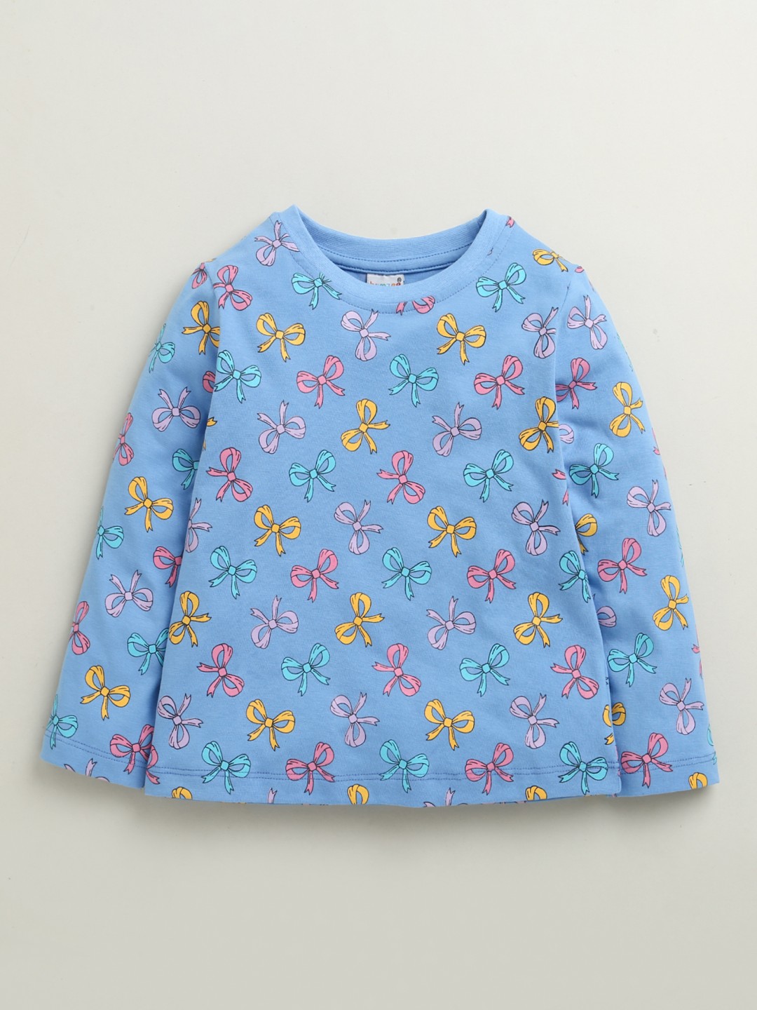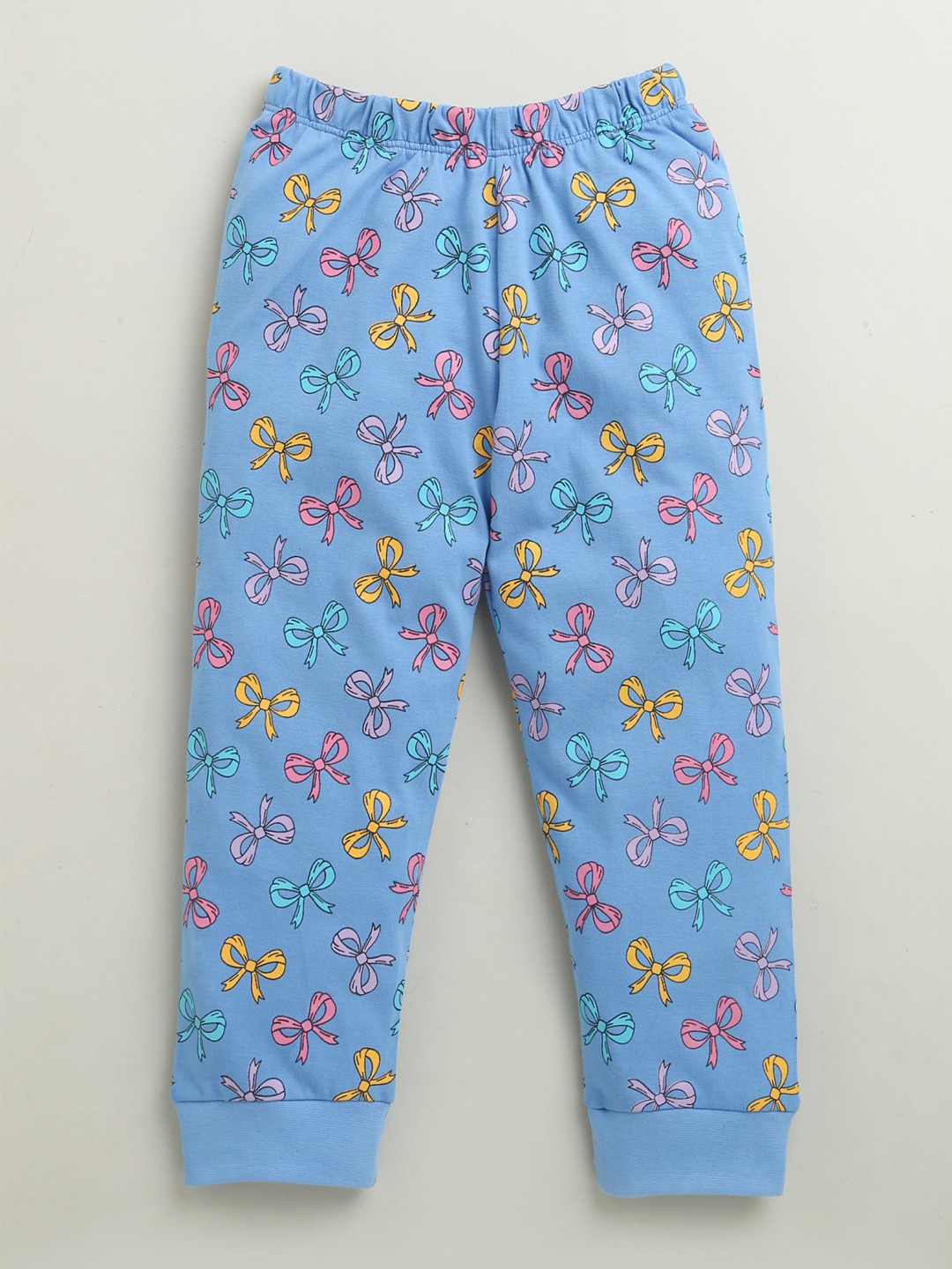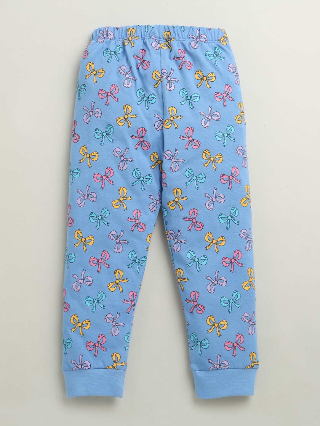 BUMZEE Blue Girls Full Sleeves Cotton T-Shirt & Pyjama Set