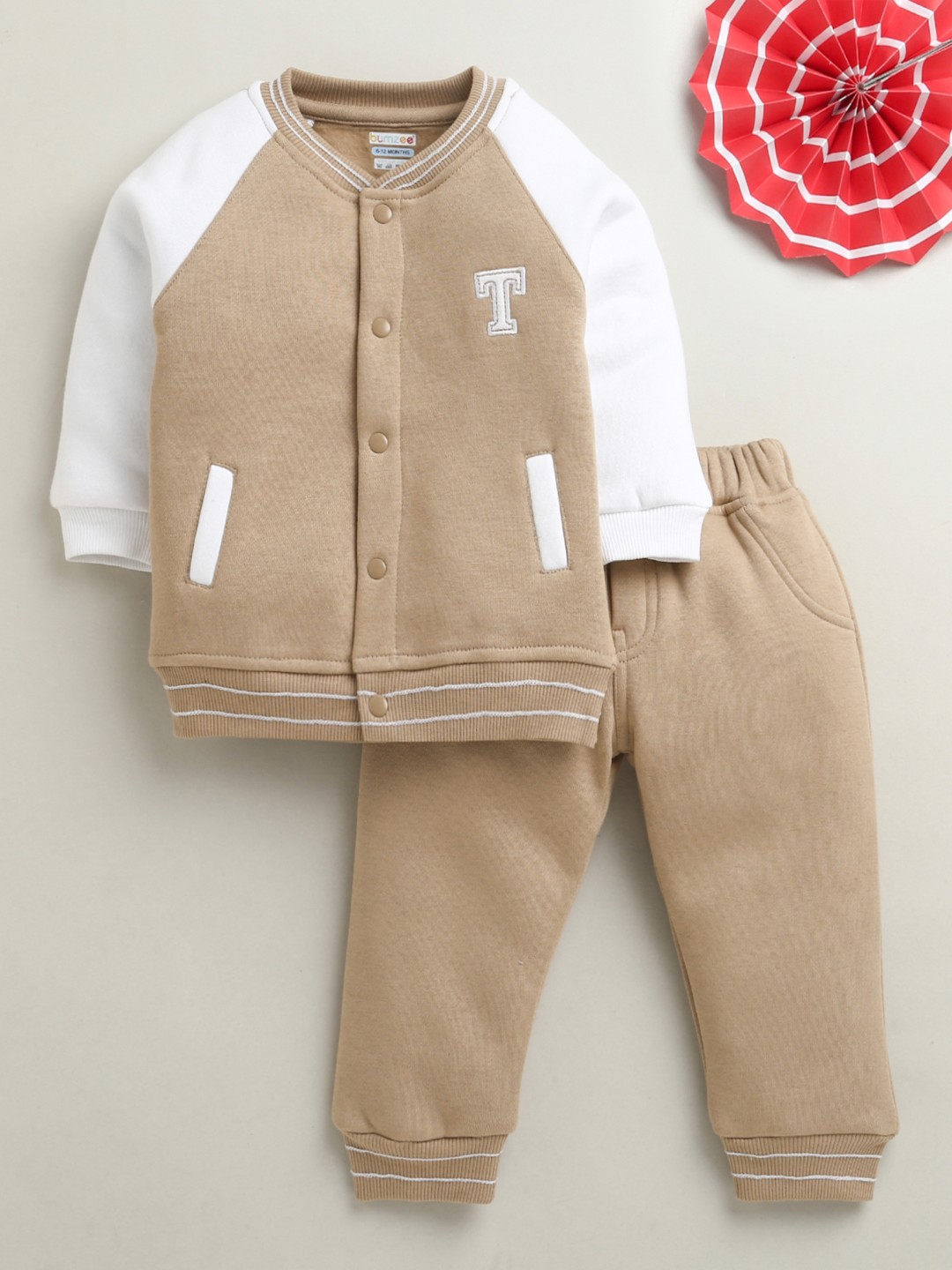 BUMZEE Peach & White Boys Full Sleeves Polyfill Winter Wear Set