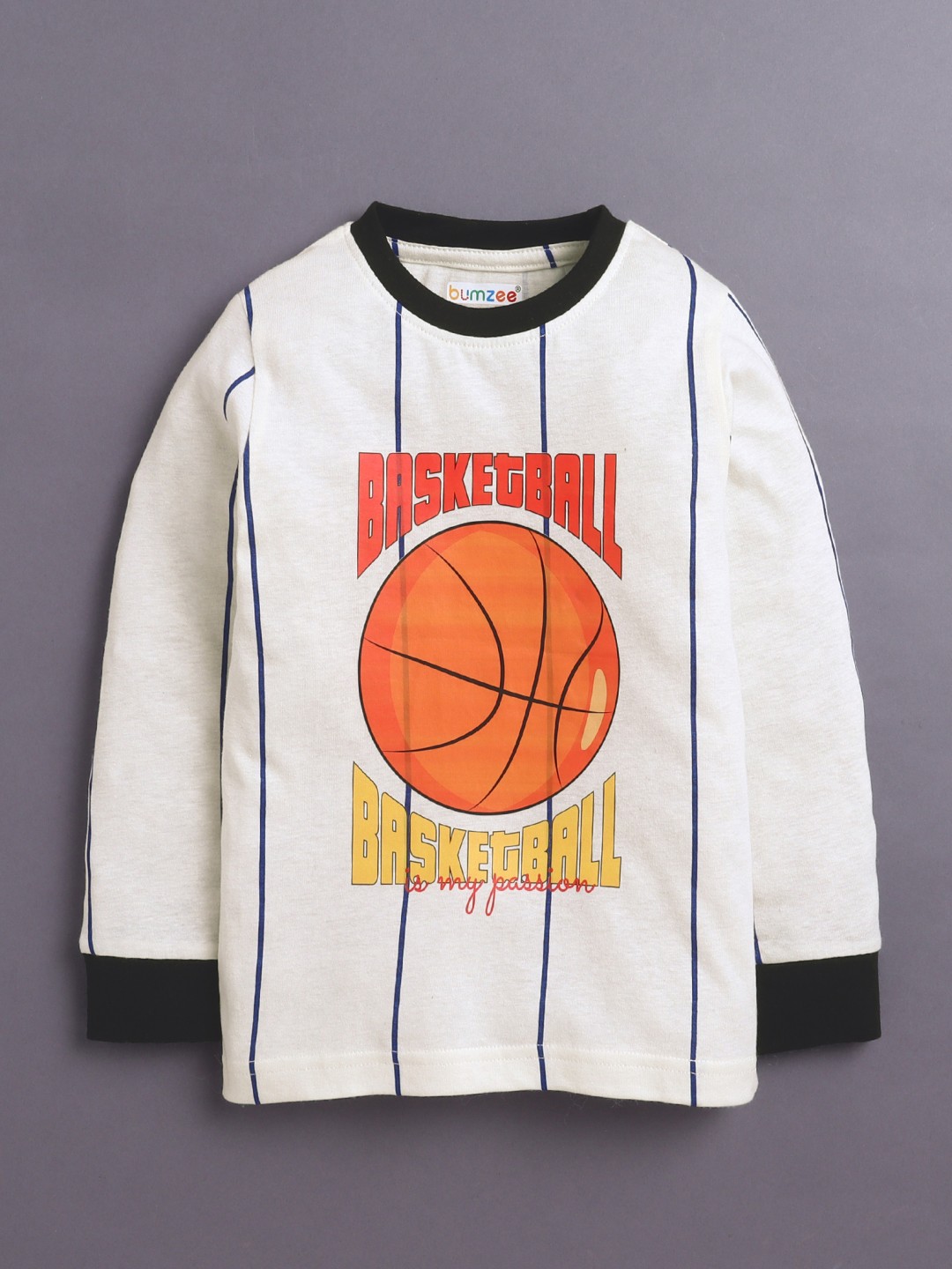 BUMZEE White & Blue Boys Full Sleeves Cotton T-Shirt & Pyjama Set
