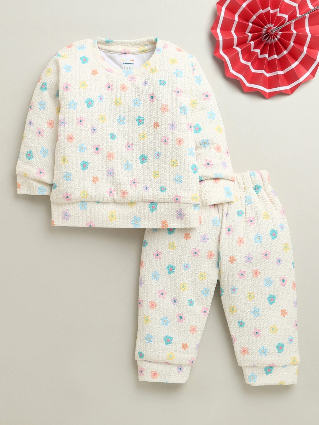 BUMZEE Cream Girls Full Sleeves Polyfill Winter Wear Set