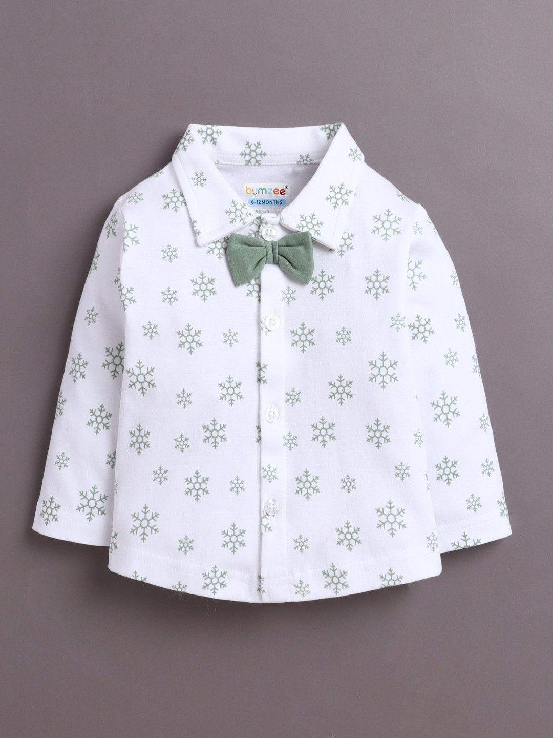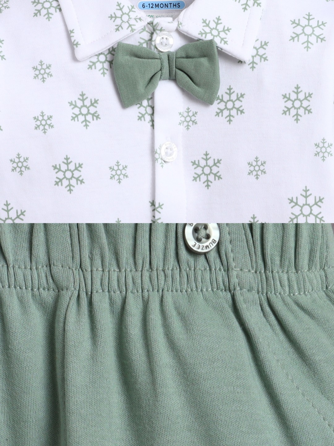 BUMZEE Maroon & White Boys Full Sleeves Shirt Waistcoat & Short Set With Applique Bow