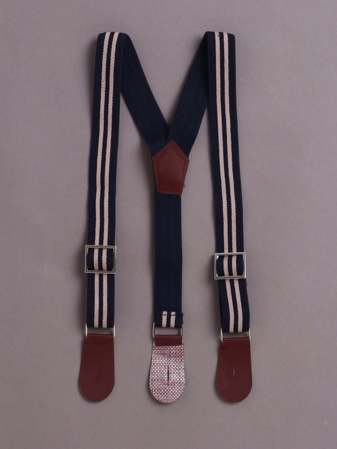 BUMZEE Navy & White Boys Full Sleeves Shirt Pant Set With Suspender & Cap