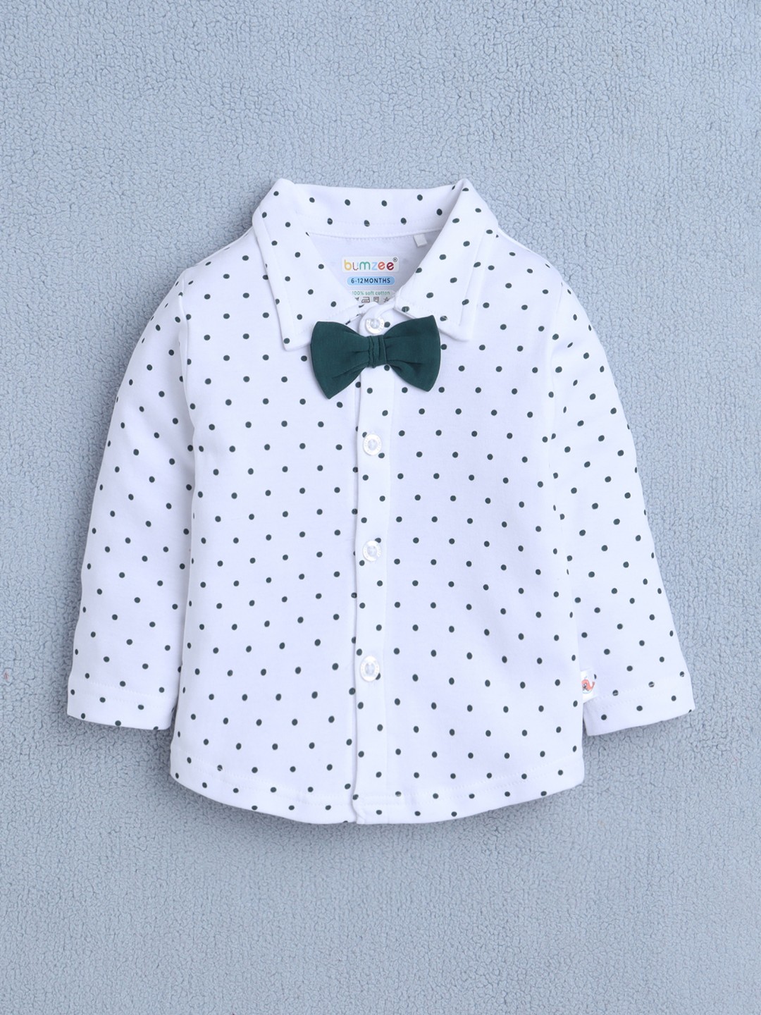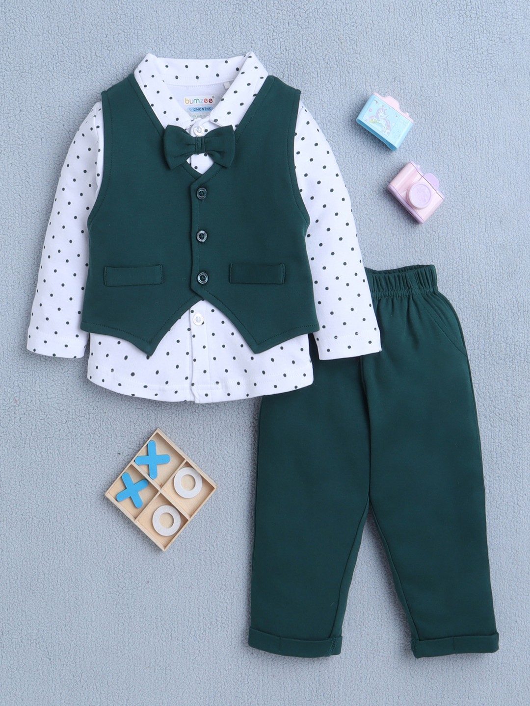BUMZEE Maroon & White Boys Full Sleeves Shirt Waistcoat & Short Set With Applique Bow
