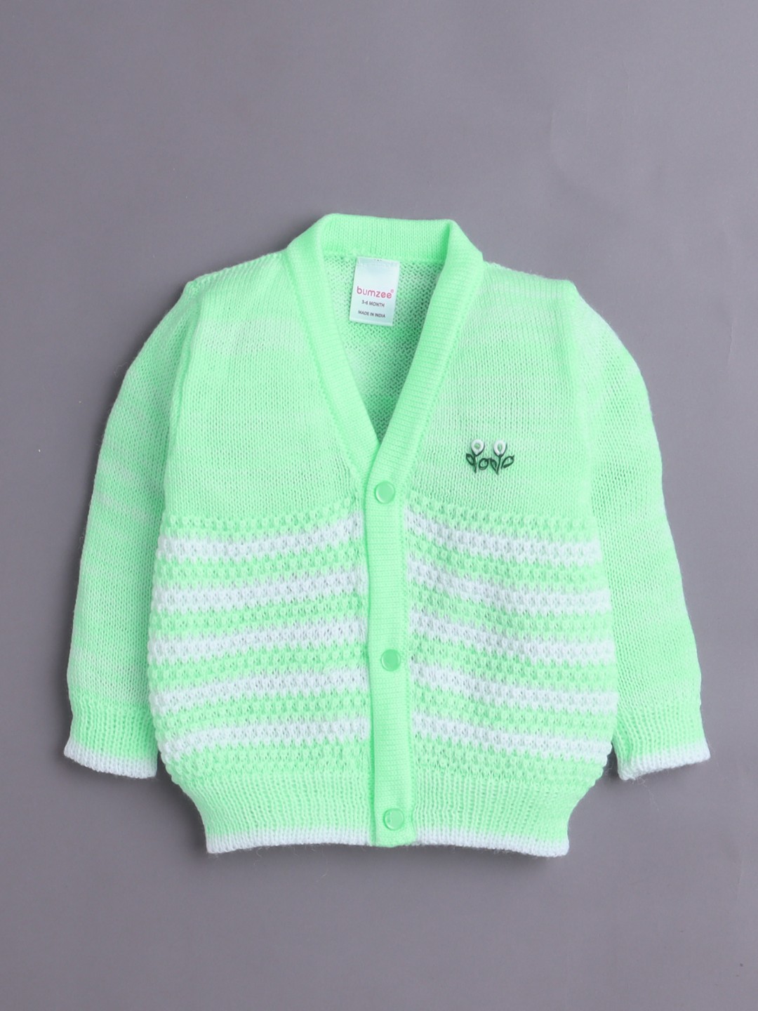 BUMZEE Green Baby Girls Full Sleeves Acrylic Blend Sweater With Cap & Socks