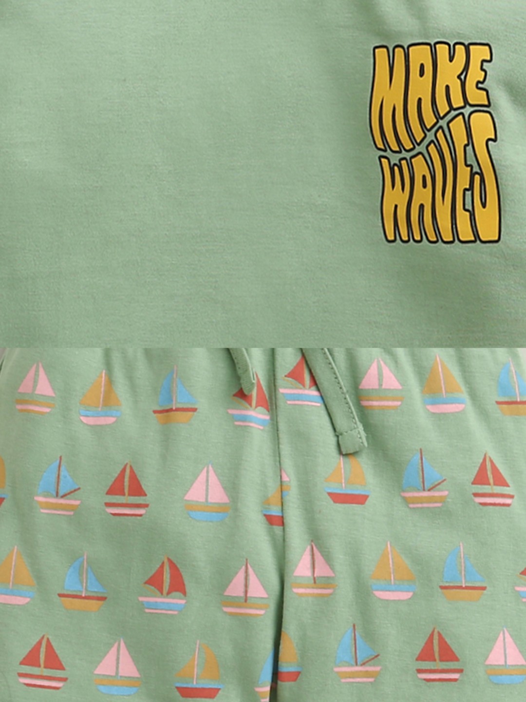 BUMZEE Green & White Boys Half Sleeves T-Shirt & Pyjama Set
