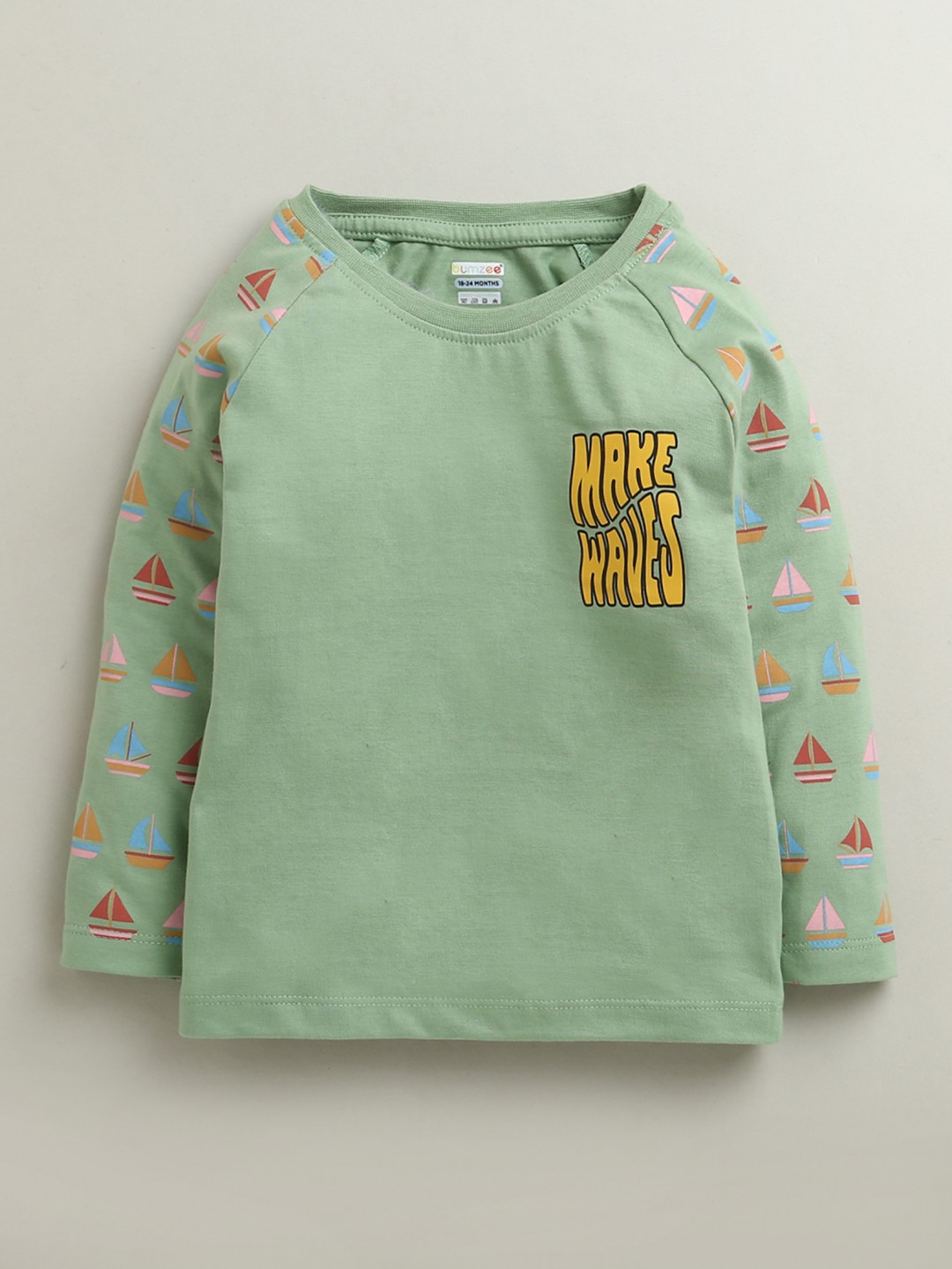 BUMZEE Mint Green Girls Full Sleeves T-Shirt & Pyjama Set