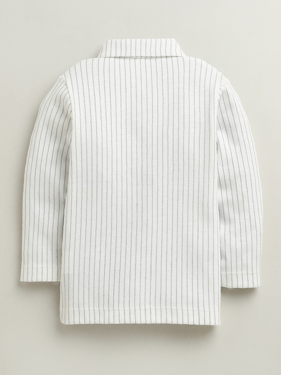 BUMZEE Navy & White Boys Full Sleeves Shirt Waistcoat & Short Set With Applique Bow
