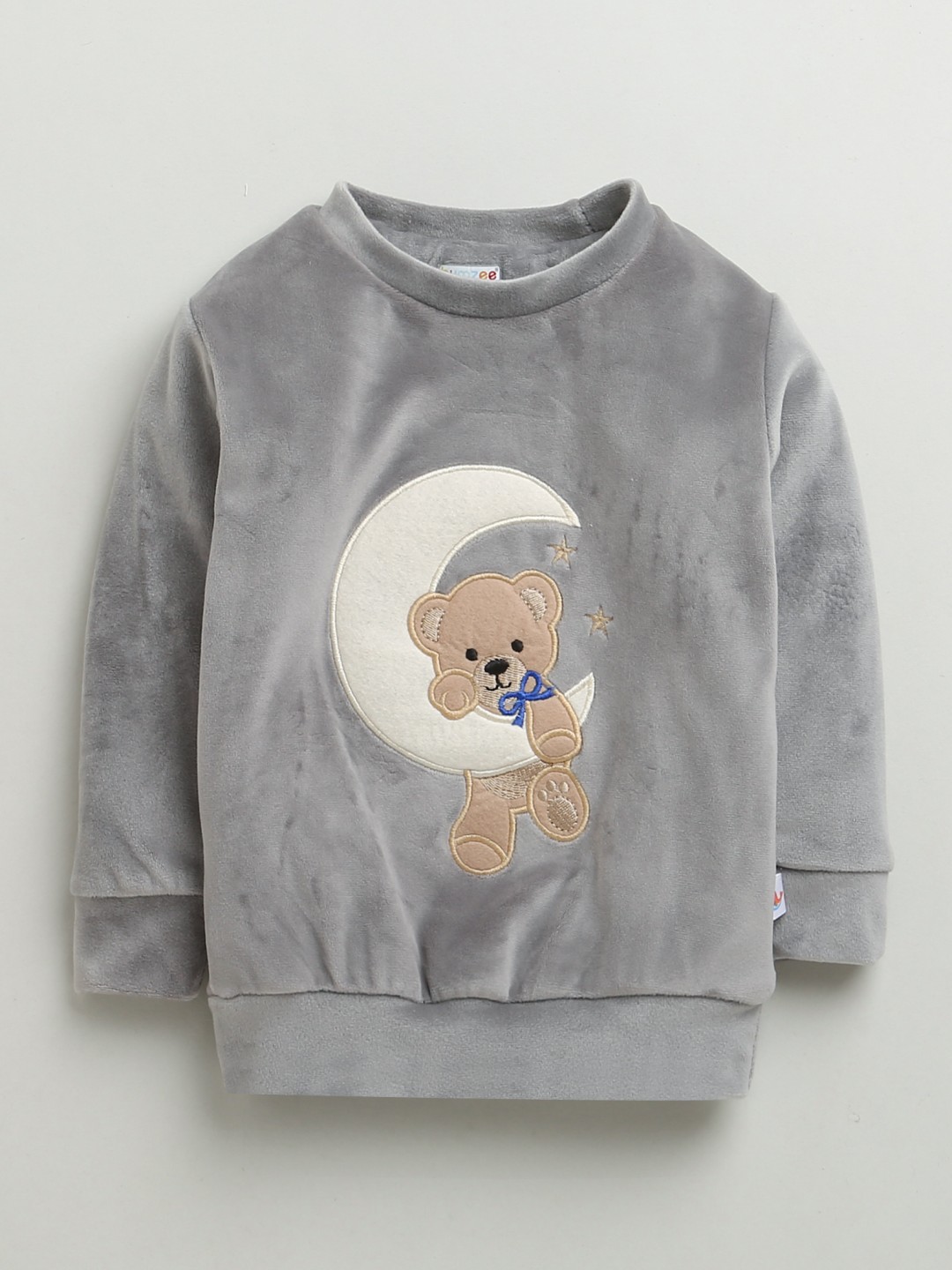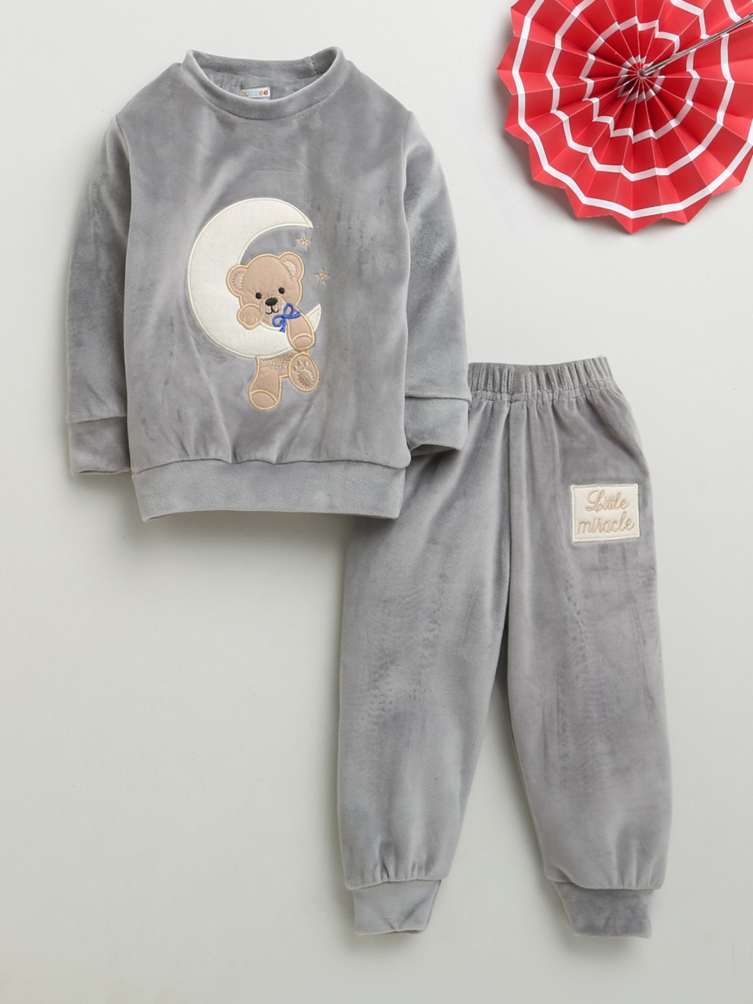 BUMZEE Sky Blue Boys Full Sleeves Fleece Winter Wear Set
