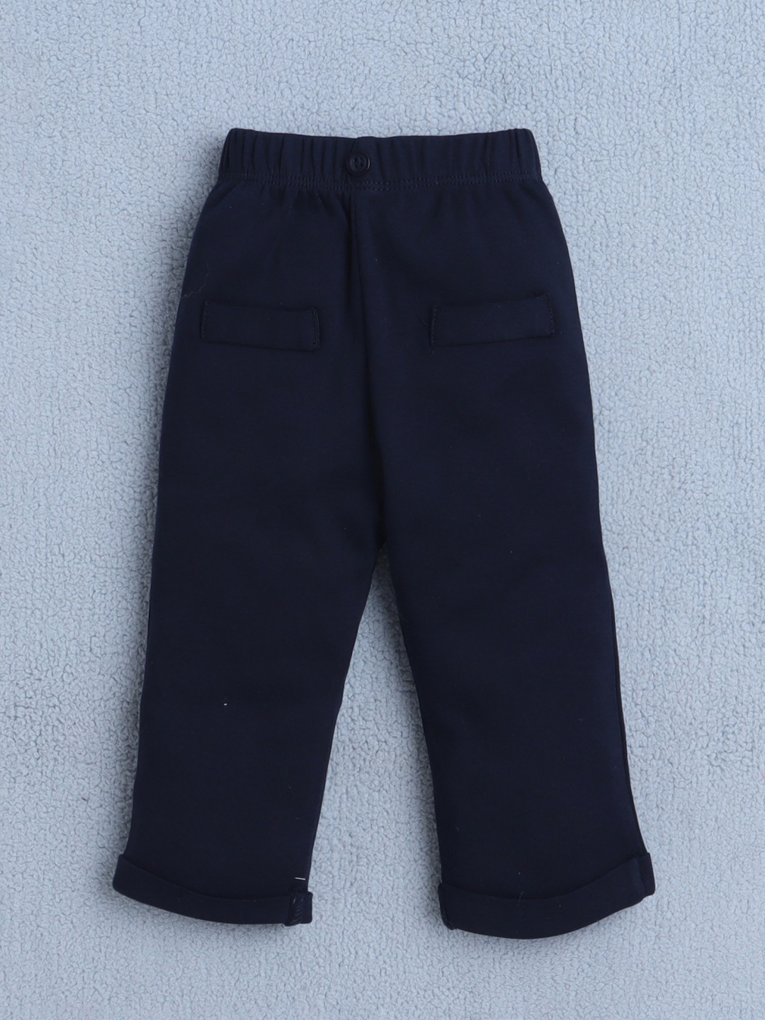 BUMZEE Navy & White Boys Full Sleeves Shirt Pant Set With Suspender & Cap